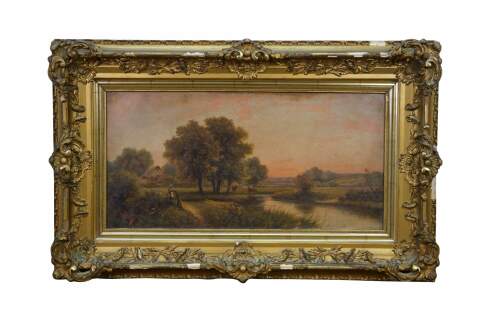 Henry Maidment 1868-1942 was a English painter of landscape, figurative, animal and genre subjects who painted during the late 19th Century. His works often show country life in their natural environment. He, along with many of his peers, prospered during the late 19th Century, winning many patrons from the emerging middle class. With the advent of Industrial Age a new, wealthy social class prospered and eagerly demanded the acquisition of art in order to show off their cultural appreciation. The majority of these patrons lived in the industrial towns of England, which were often smoky and dirty places in which to dwell. As a reaction, there evolved a great demand for landscapes. Maidment’s canvases provided an escape into a clean and idealised countryside.