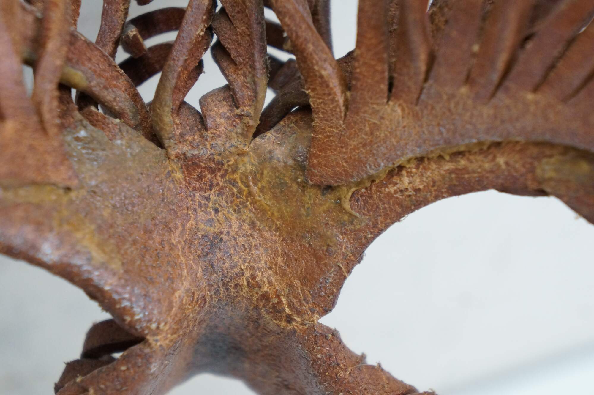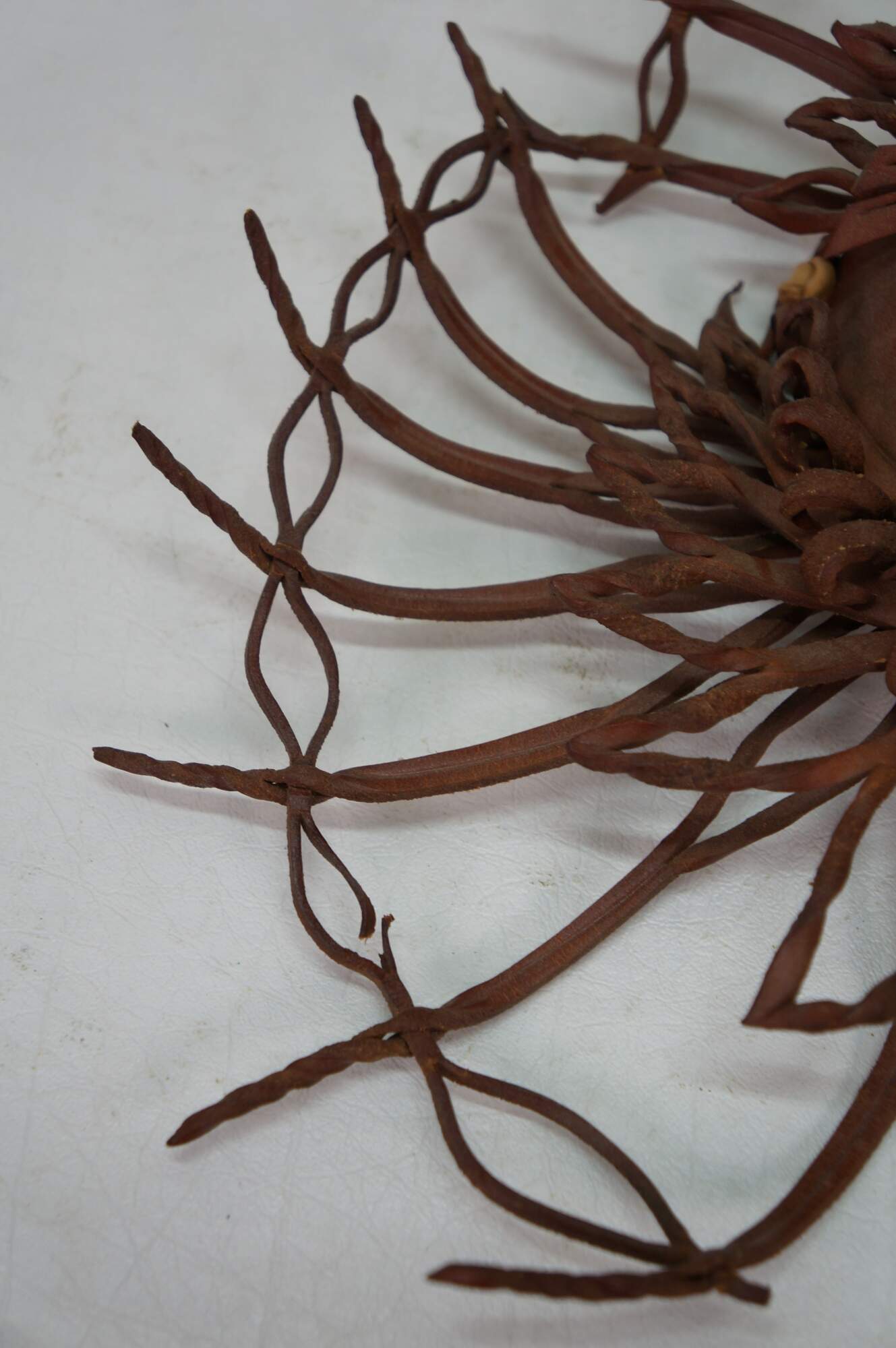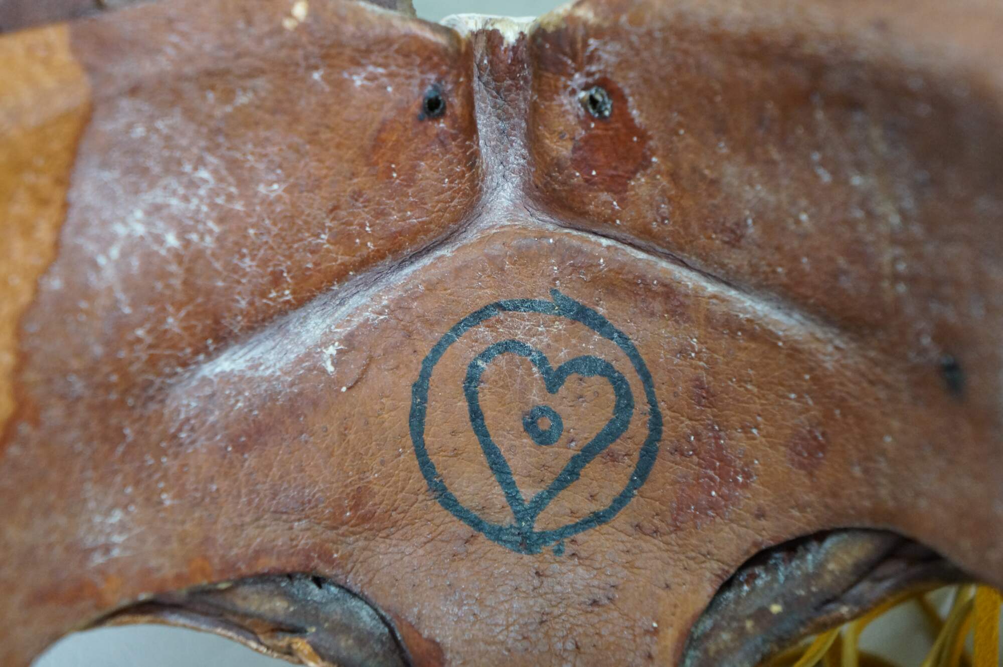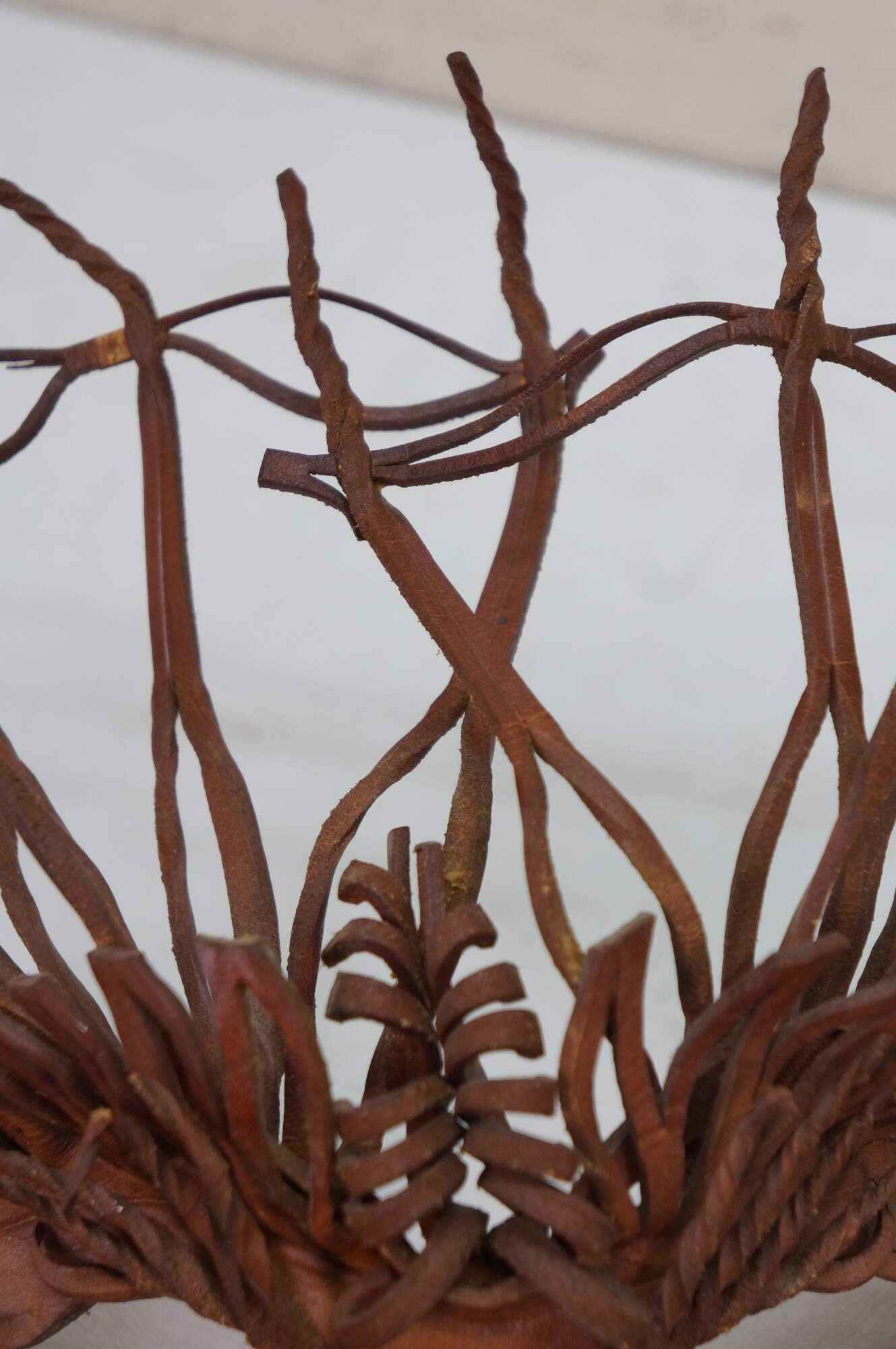 Two vintage J.L. Chuites hand made face mask art sculptures. Signed by the American master leather artist JL Chuites of Parthenon, Arkansas, circa 1987 and 1989.