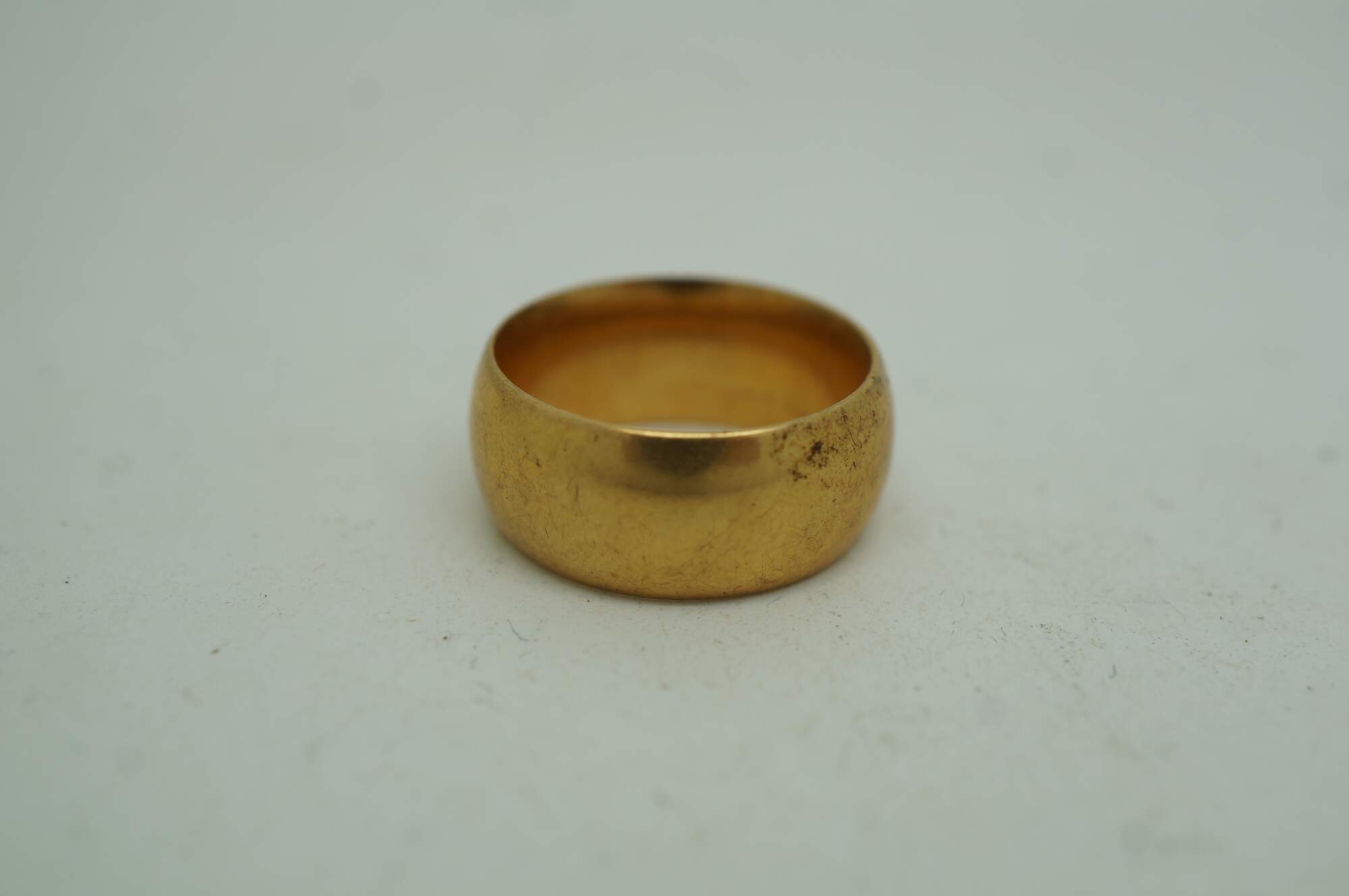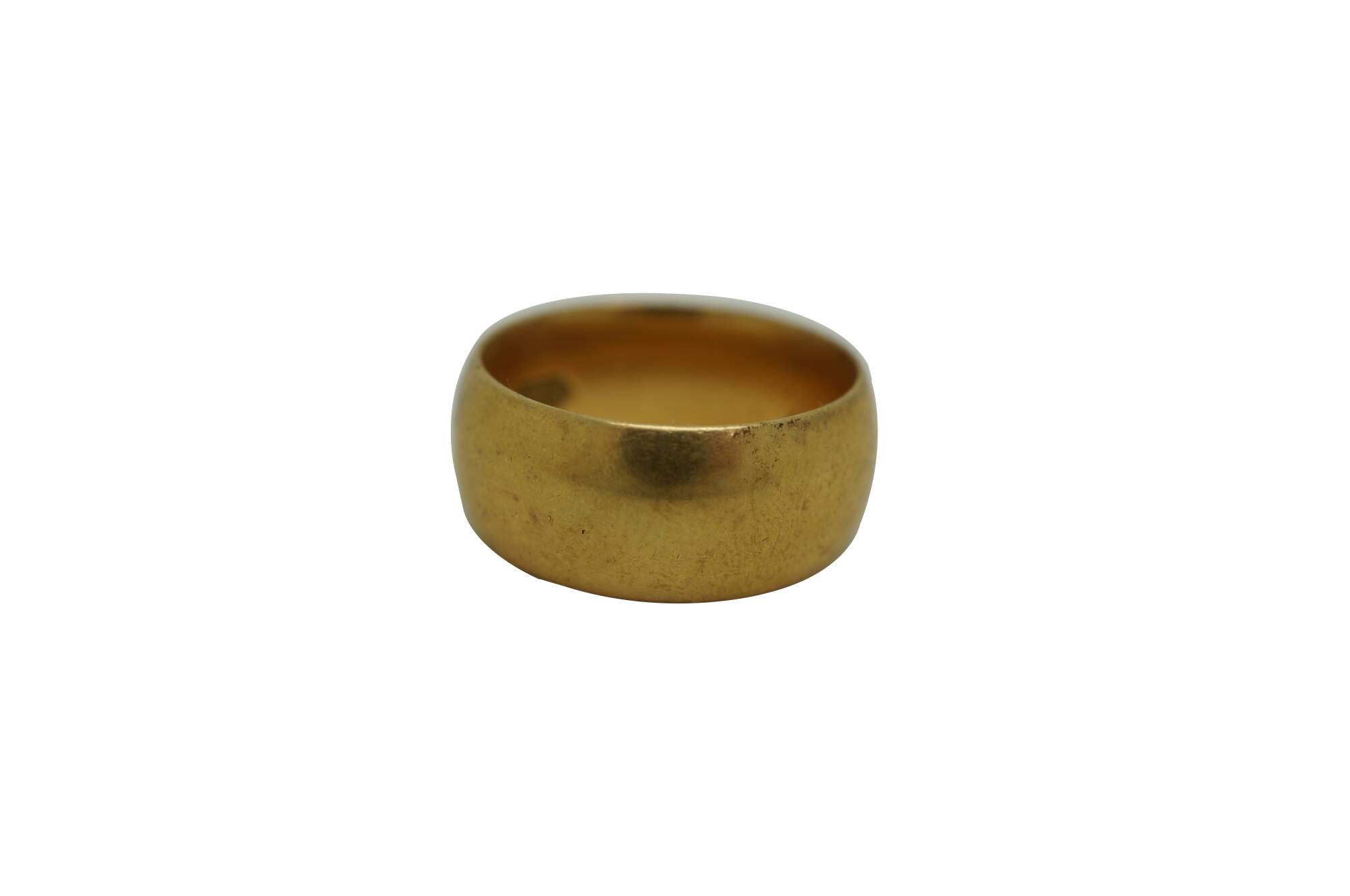 Vintage Art Deco Era Cigar Style Wedding Band. Features an FF monogram on the inside. Marked 18 along the inside with an anchor emblem.