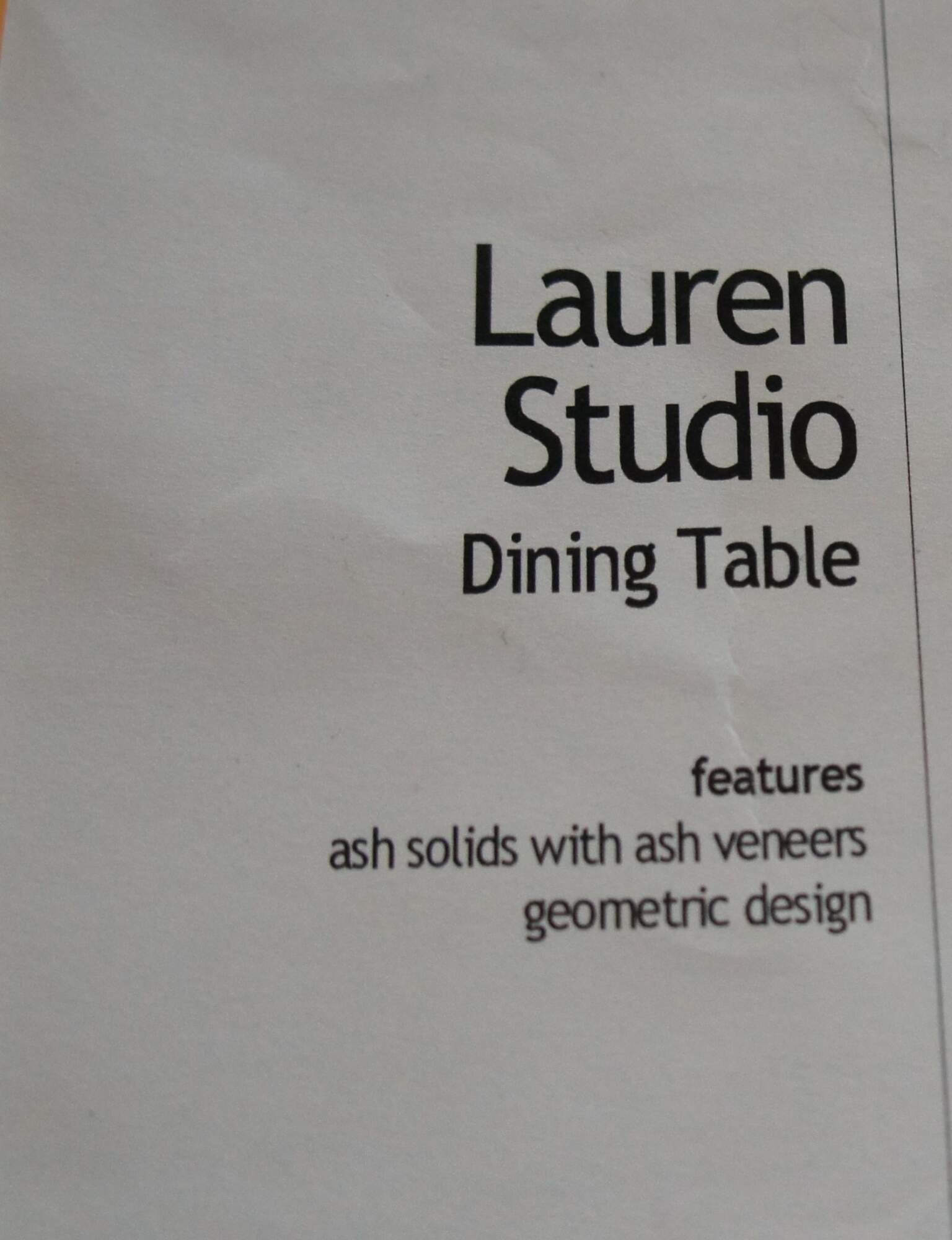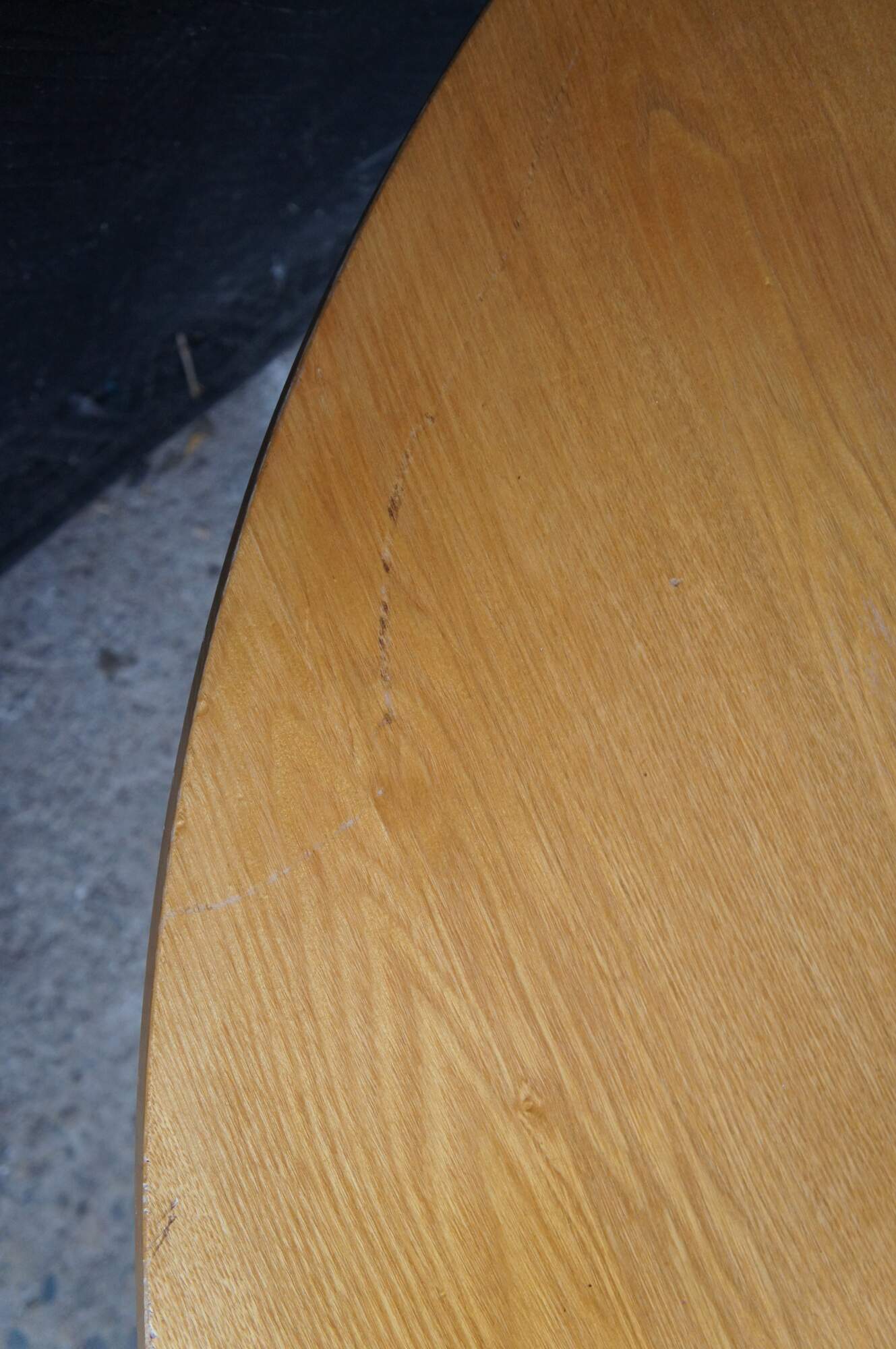 Features a round ash top over a geometric modernist base. Great for use in a game room or dining / breakfast nook. Includes Glass top.