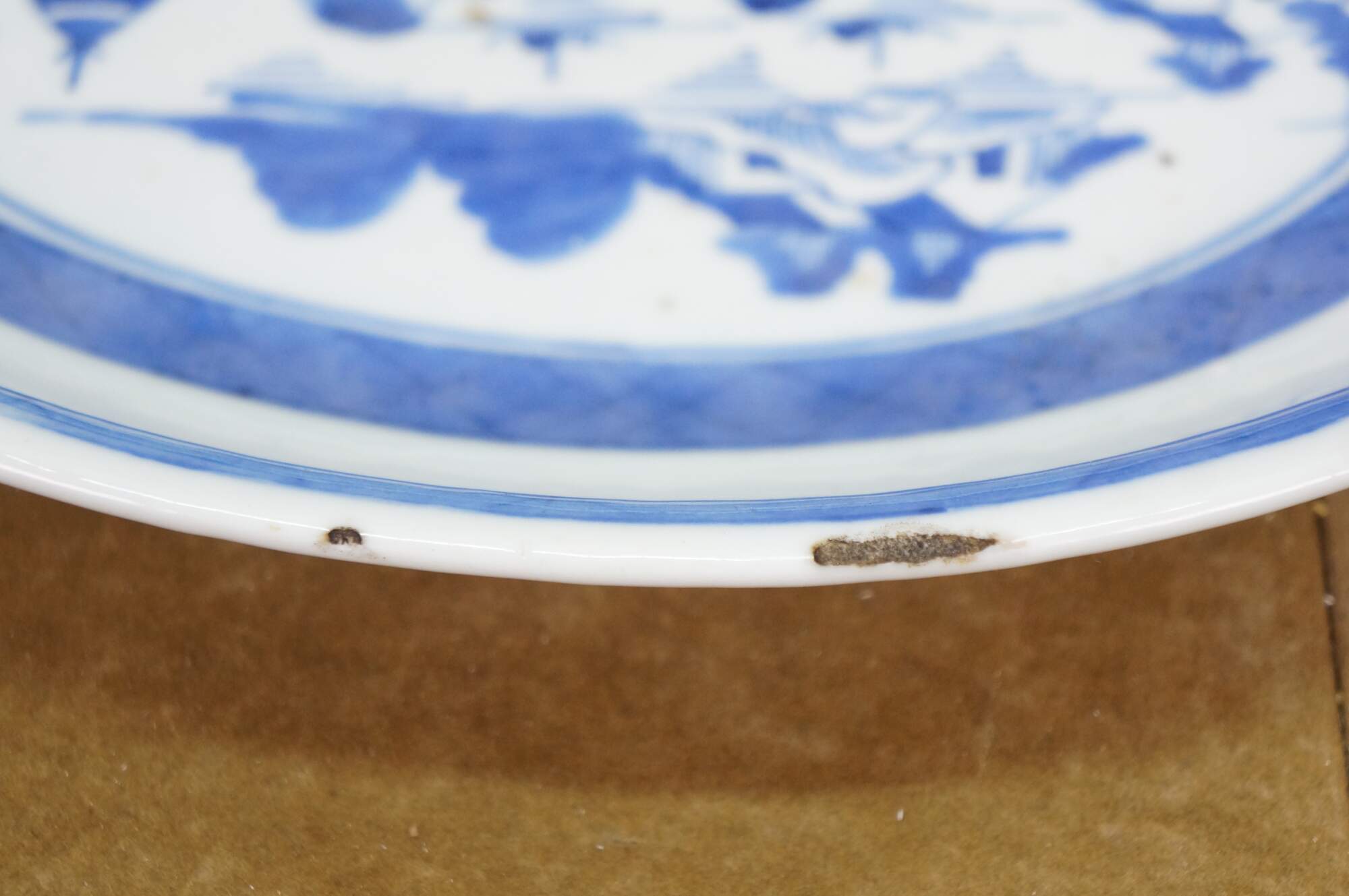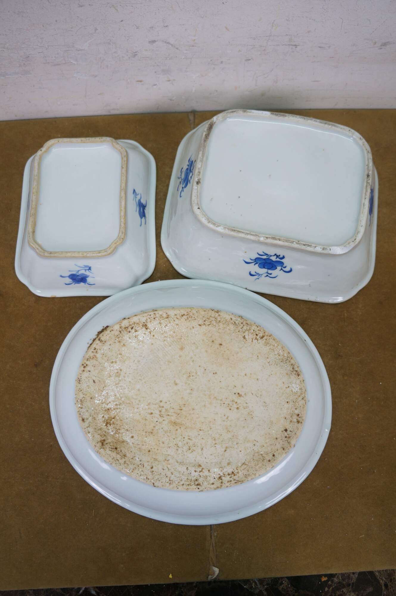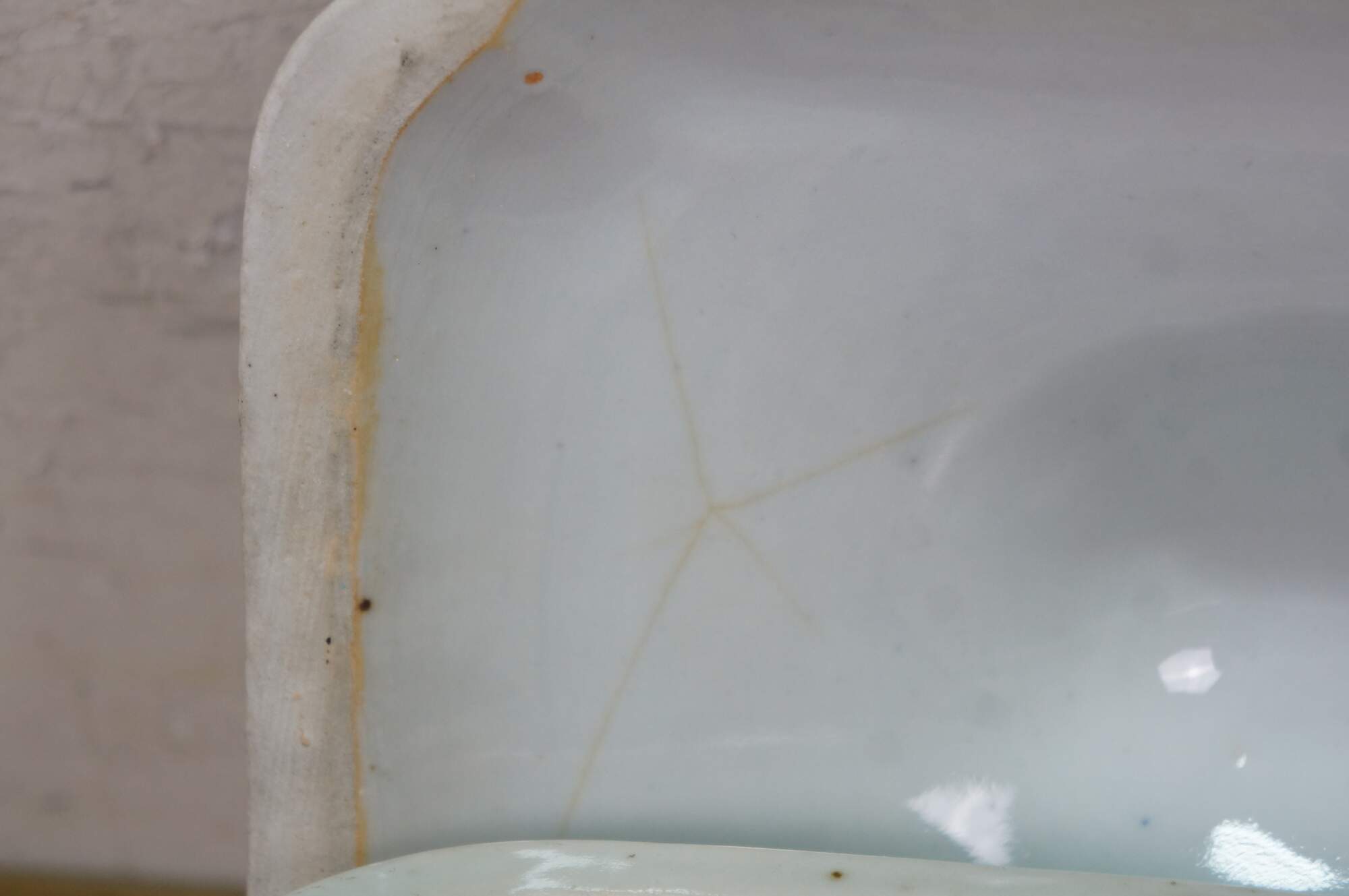 Discoloration/stains; some chips / crack to base of one; crazing.