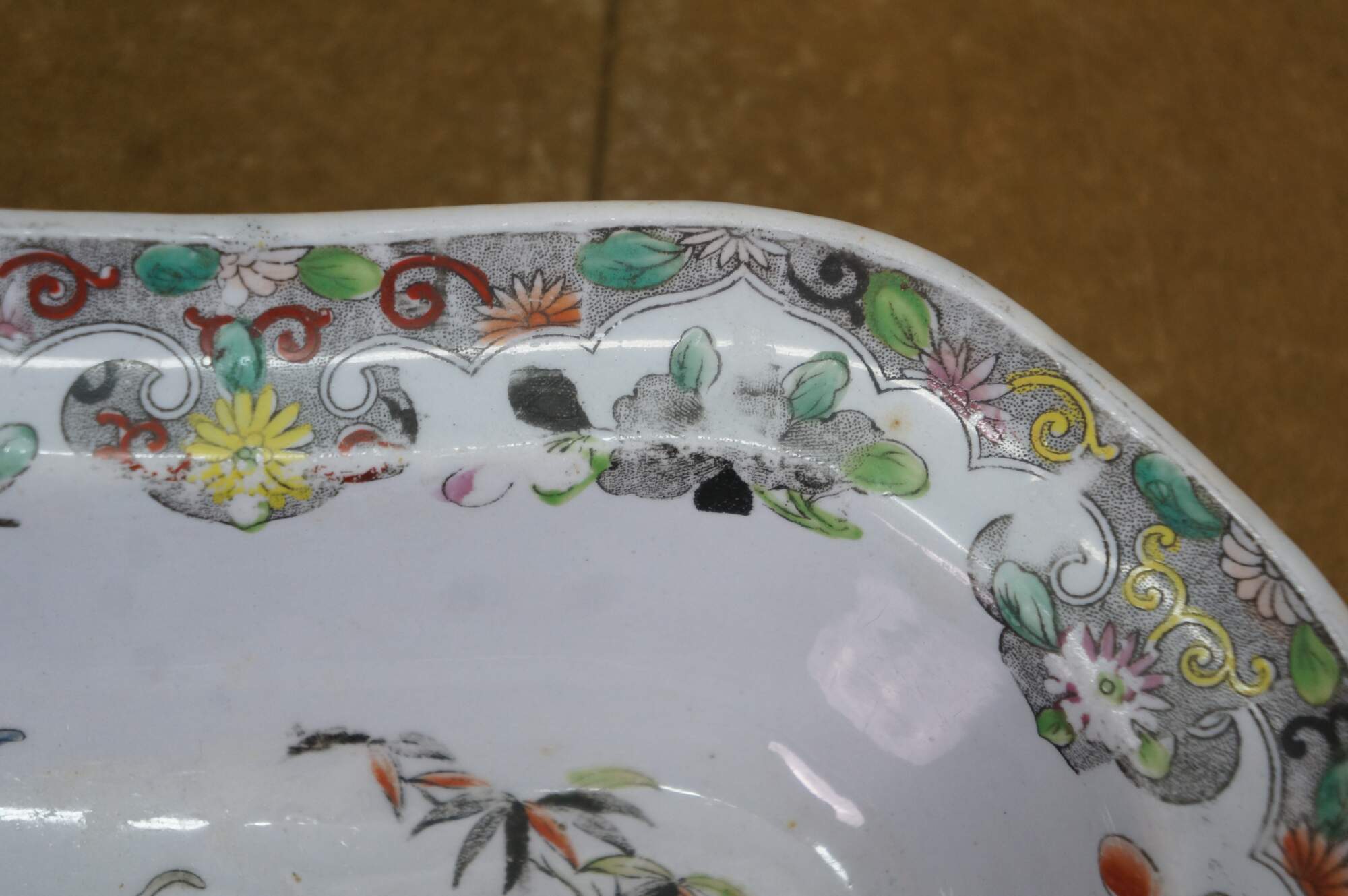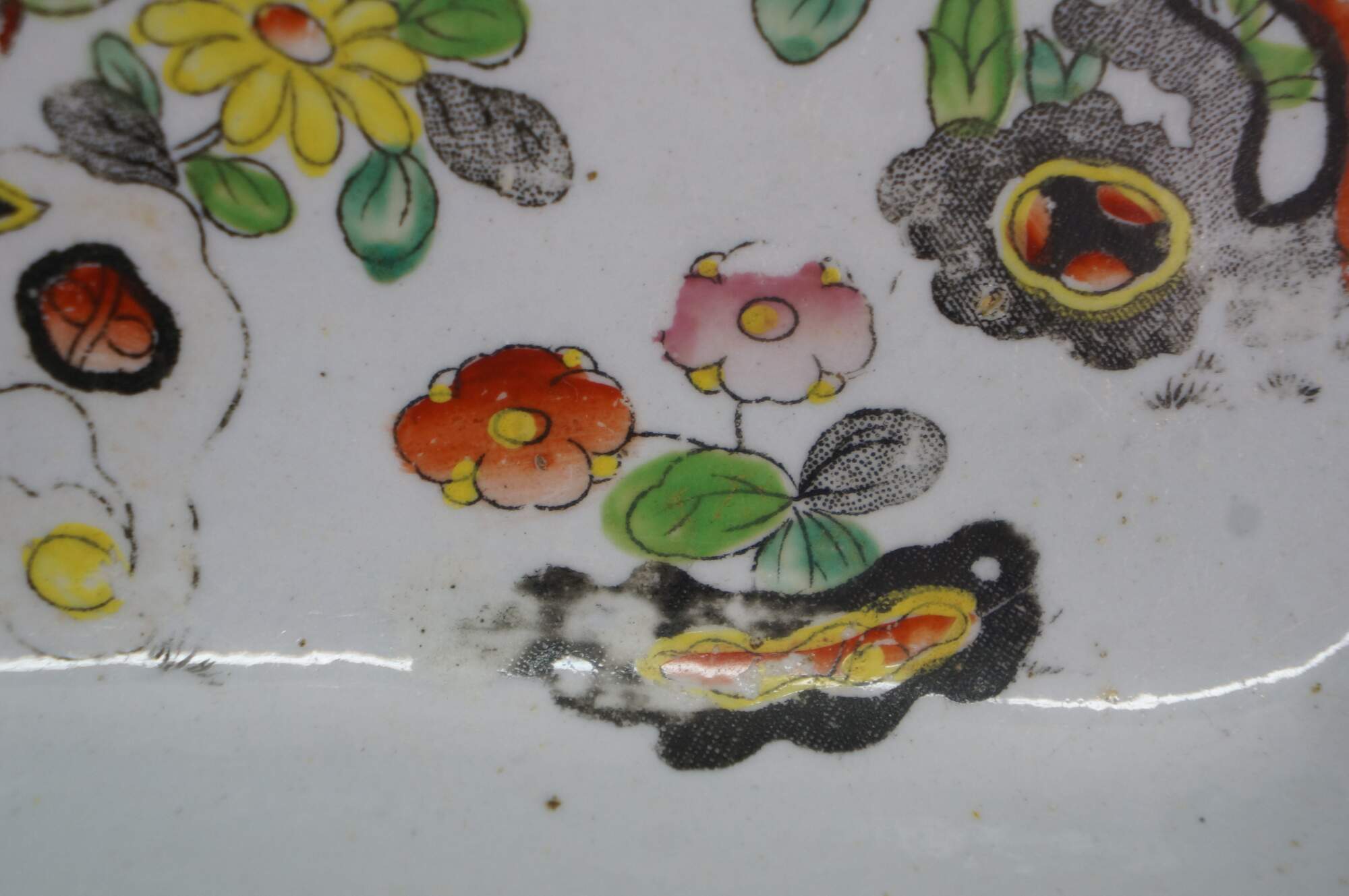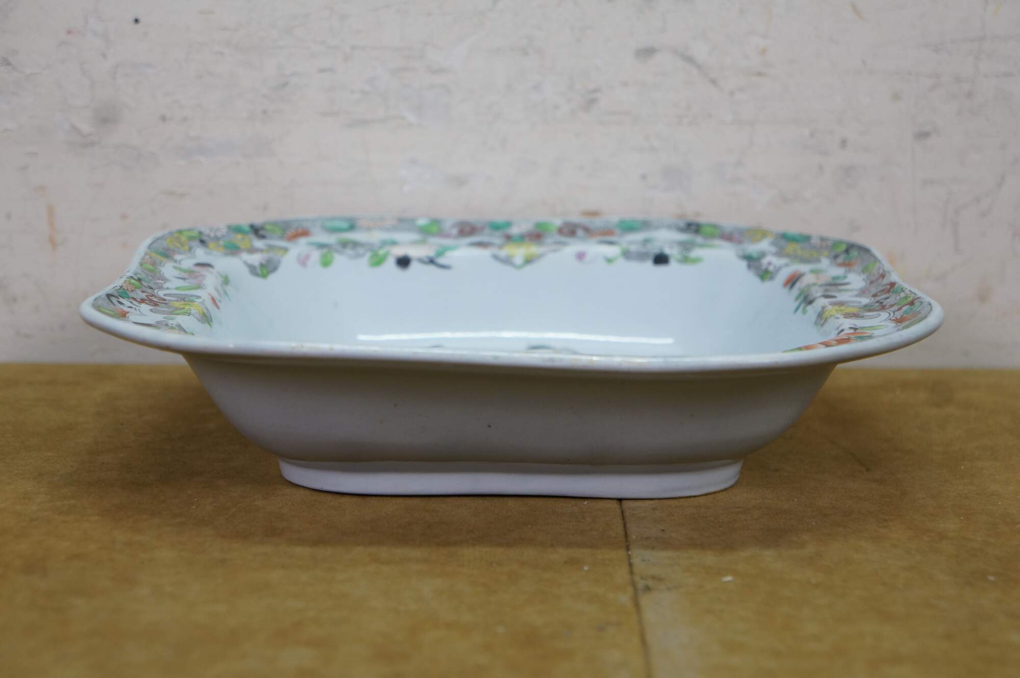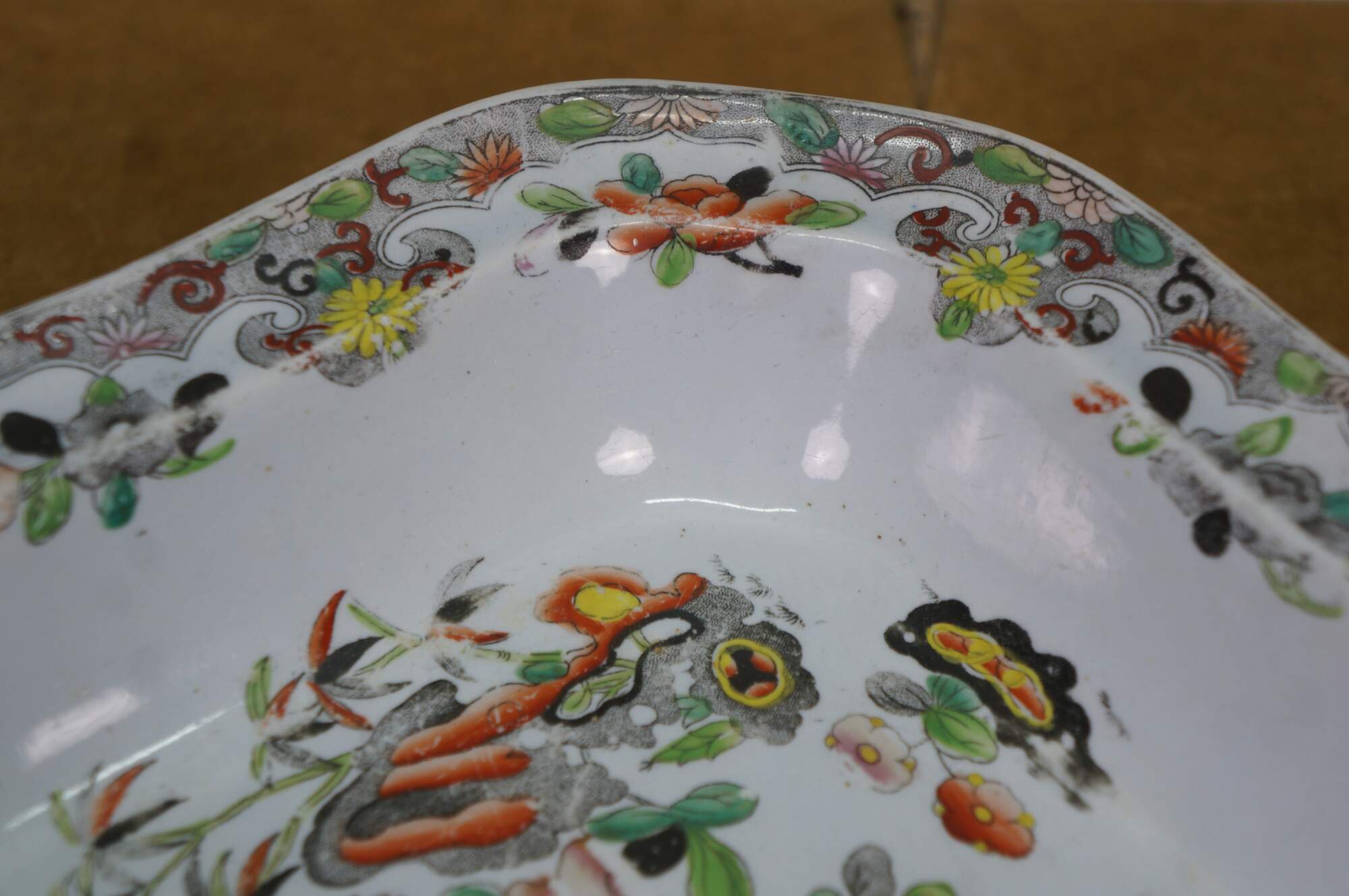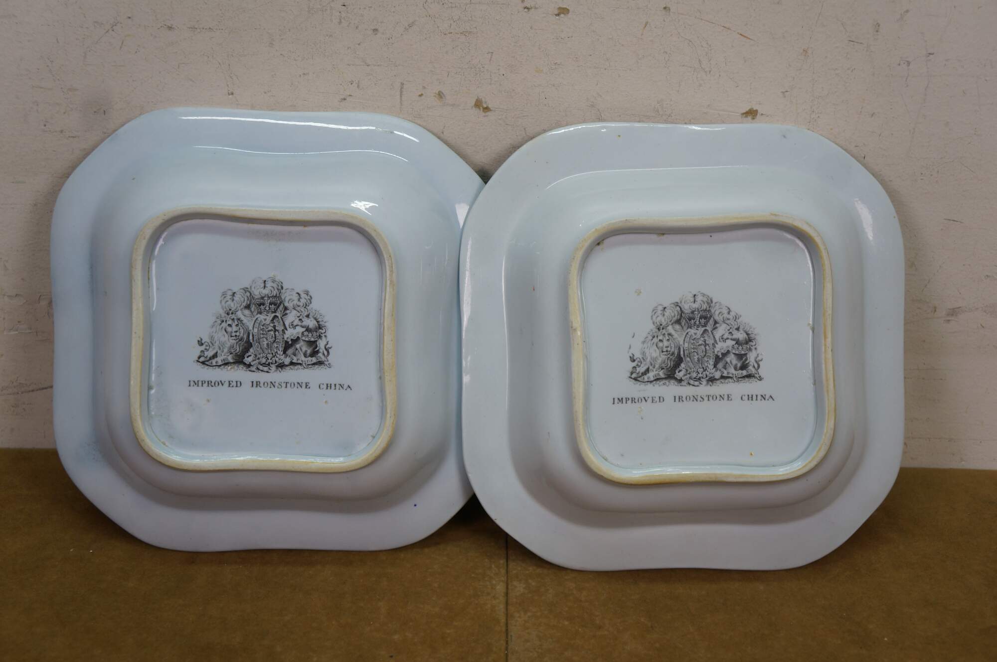 Two antique English Stephen Folch Chinoiserie Square Serving Bowls or trays in the Imari Ironstone Bamboo & Basket pattern with Royal Arms mark, Circa 1825