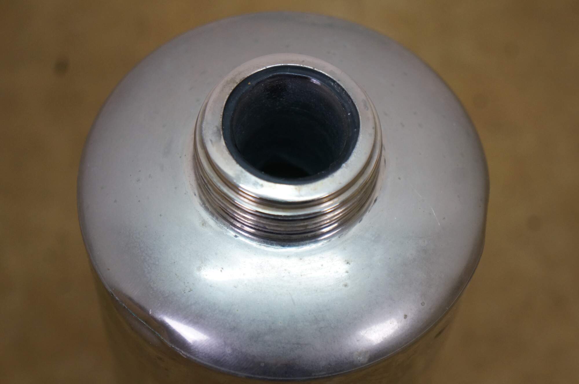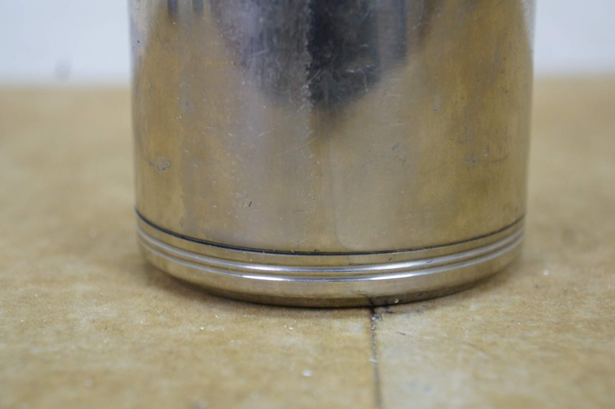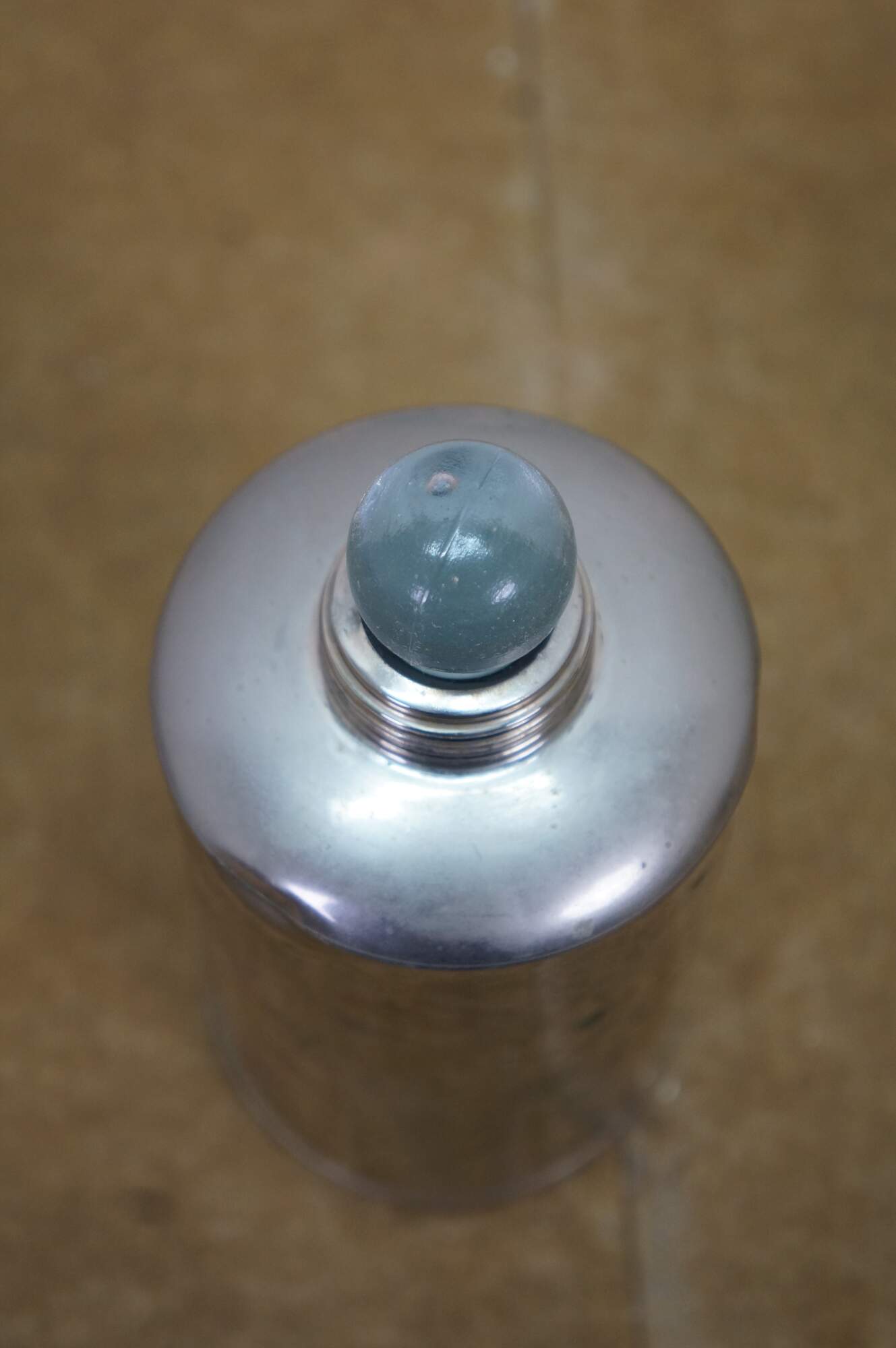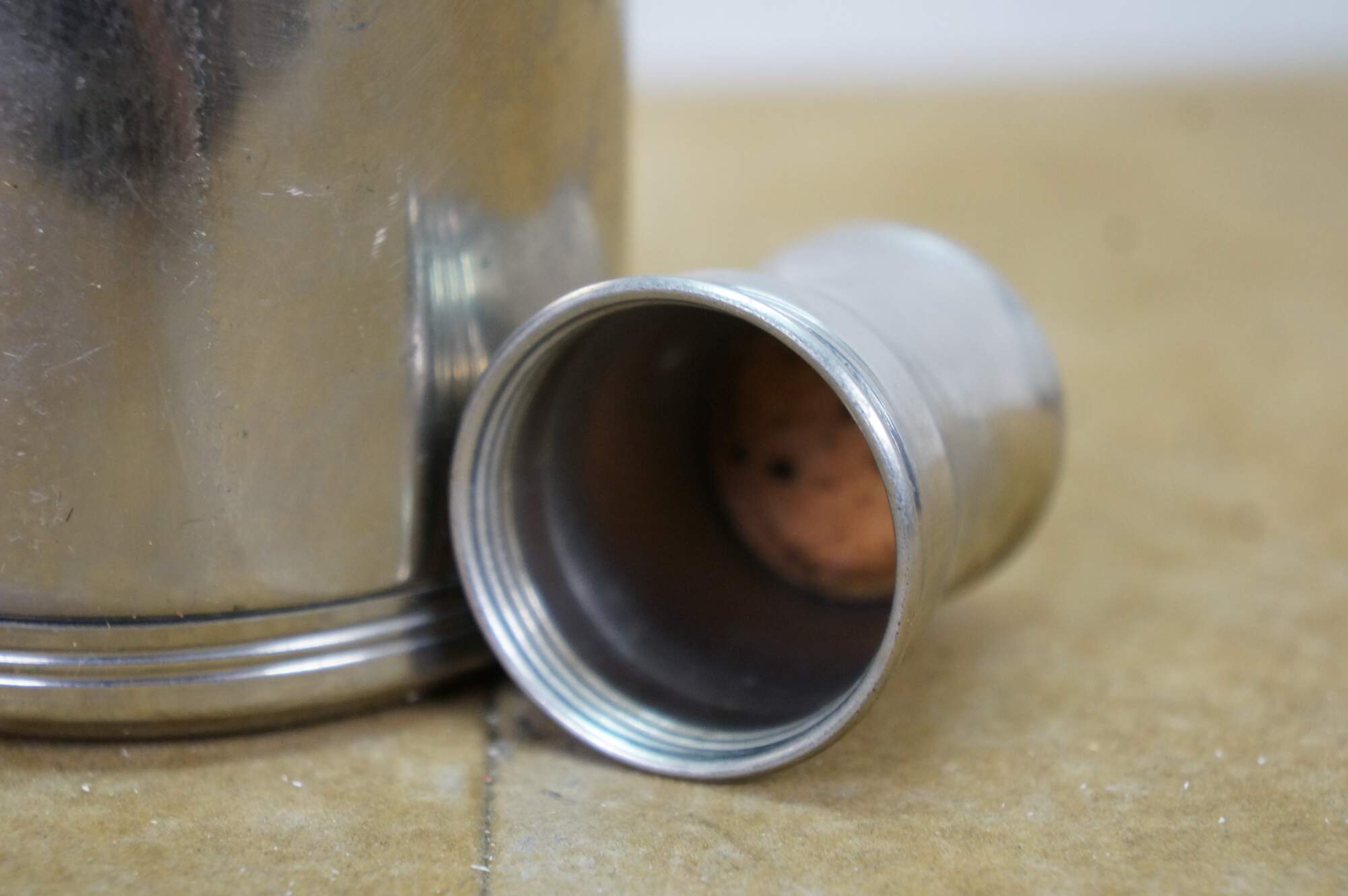A unique early 20th Century silver plate liquor flask. Features a glass ground stopper and screw on lid / shot glass. Great for use on the go or display at your bar.