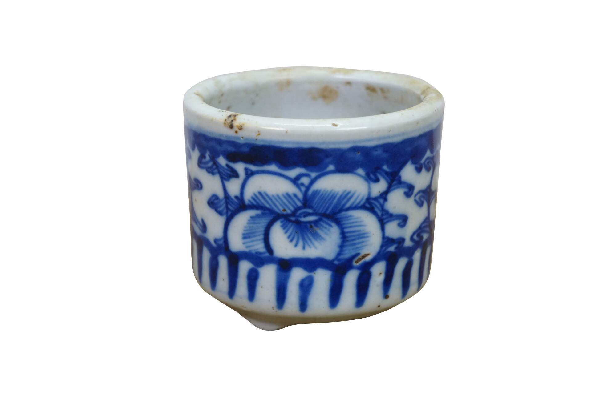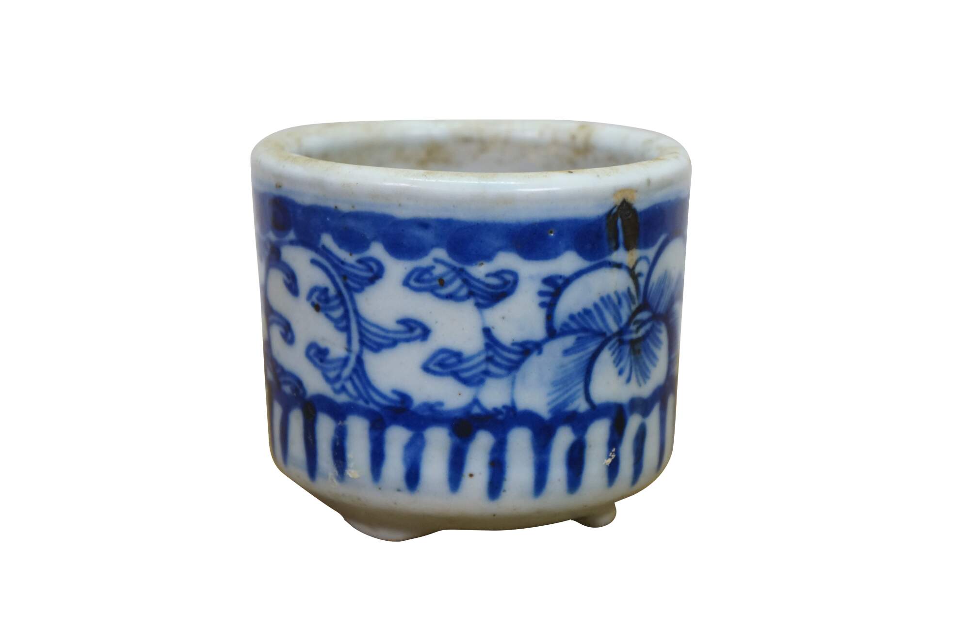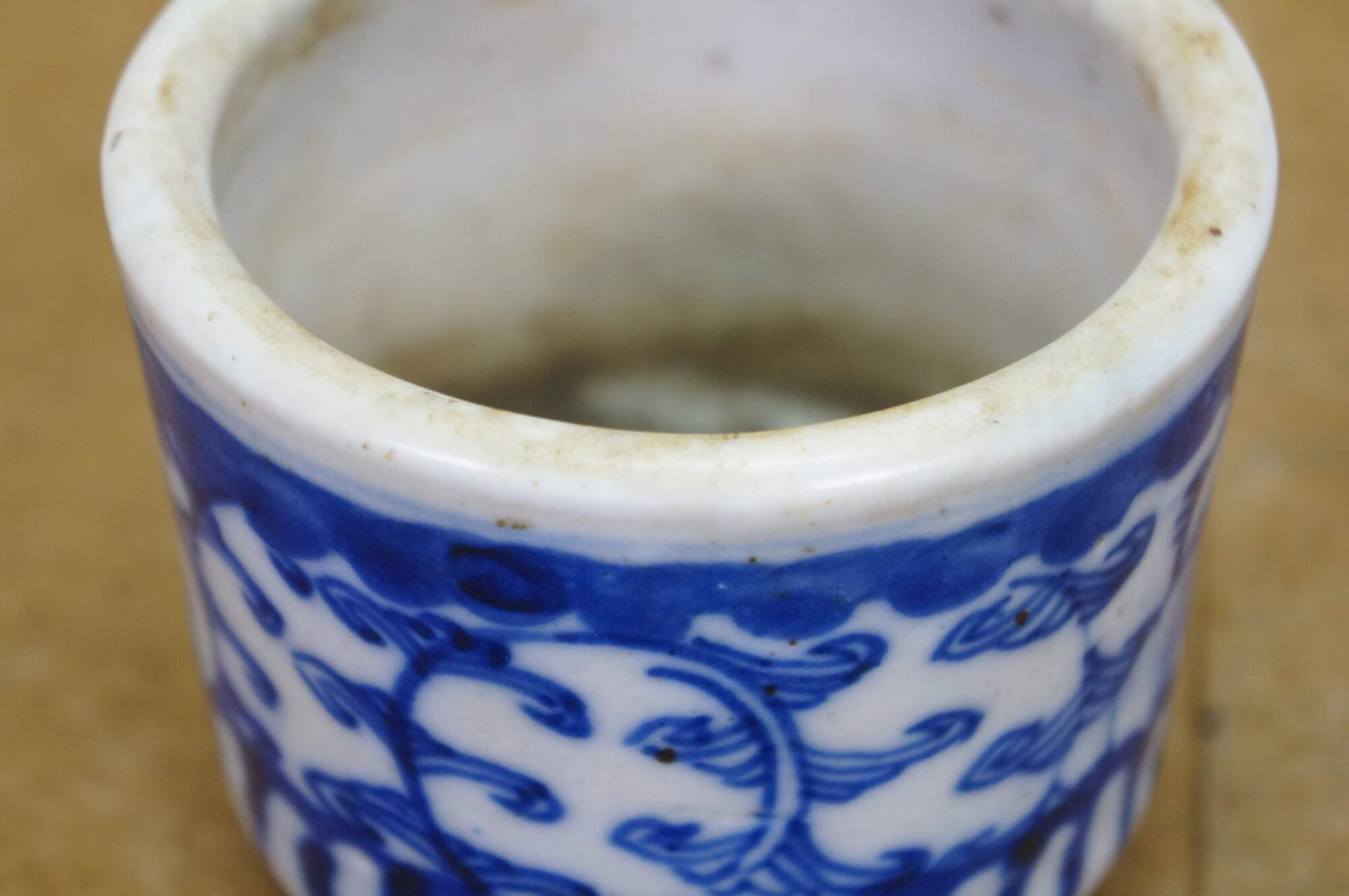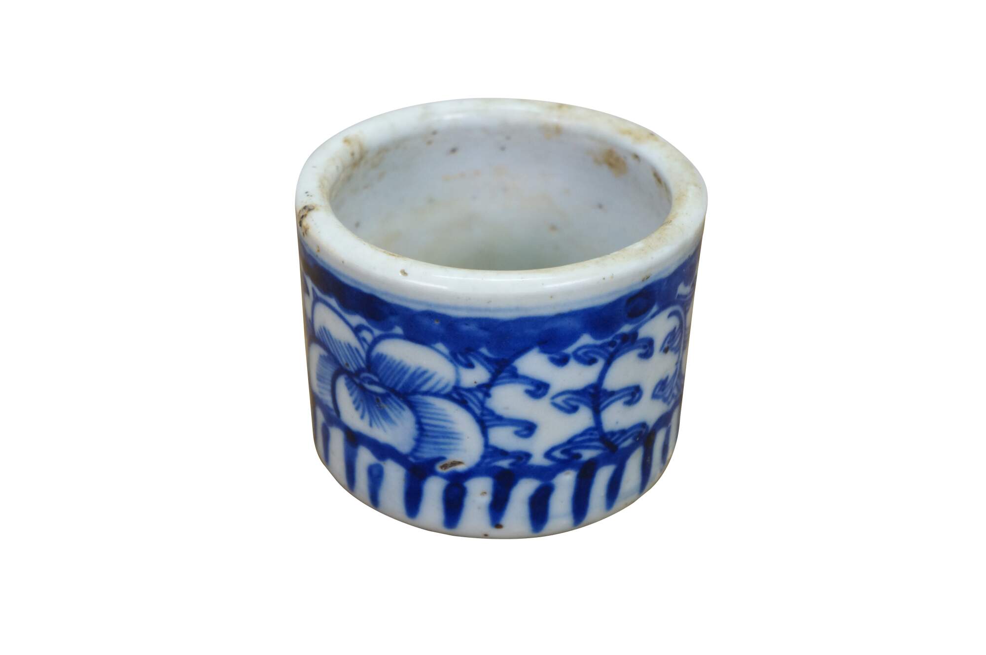 19th-century Chinese blue and white porcelain brush pot,. These were often used as a small planter or cachepot.
