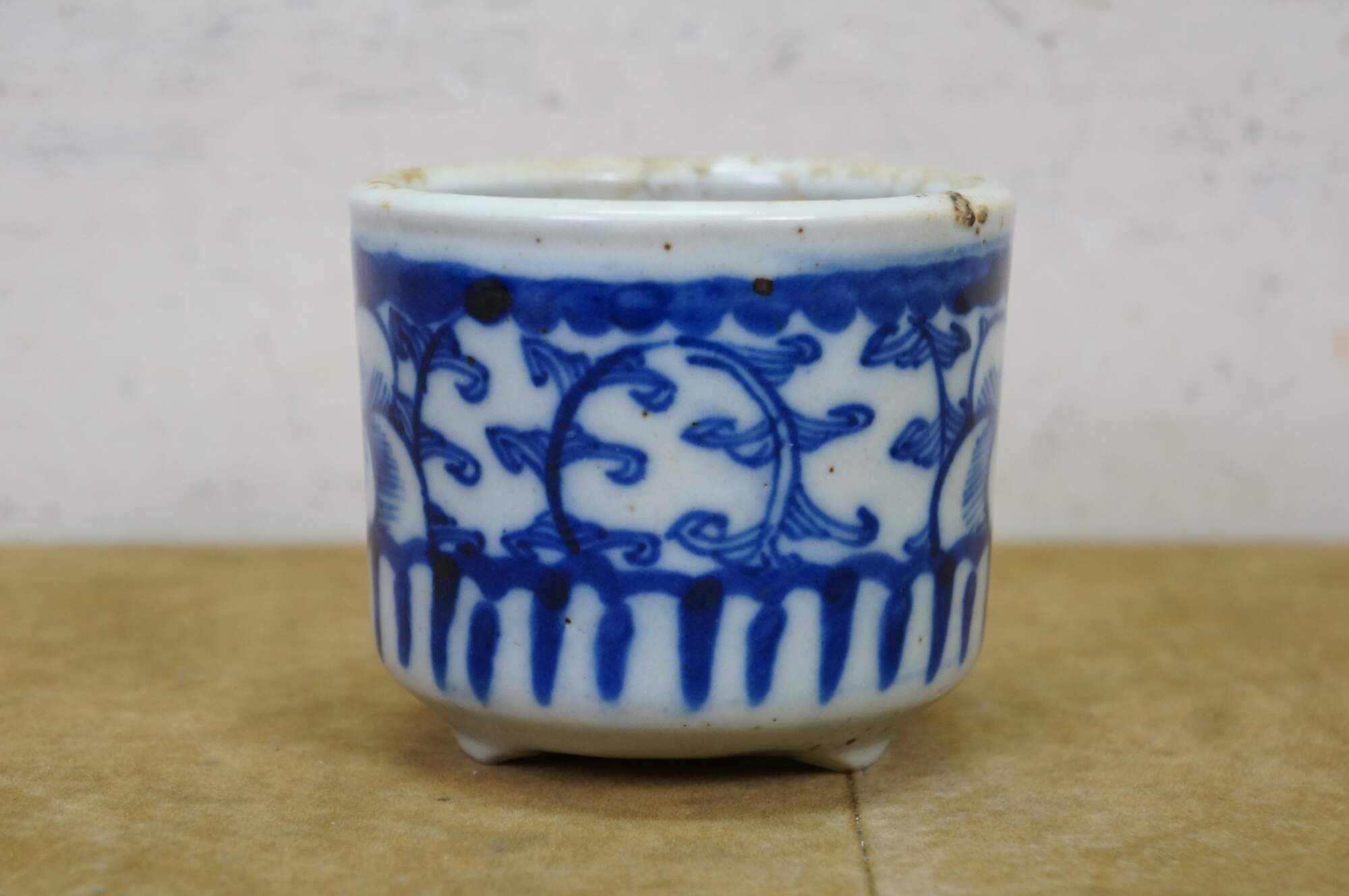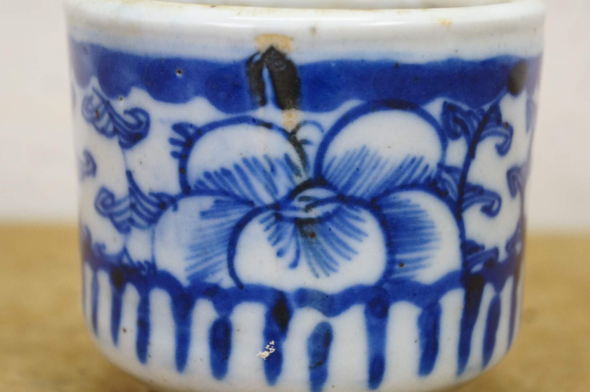 Design: Hand-painted blue and white floral or foliate motifs.