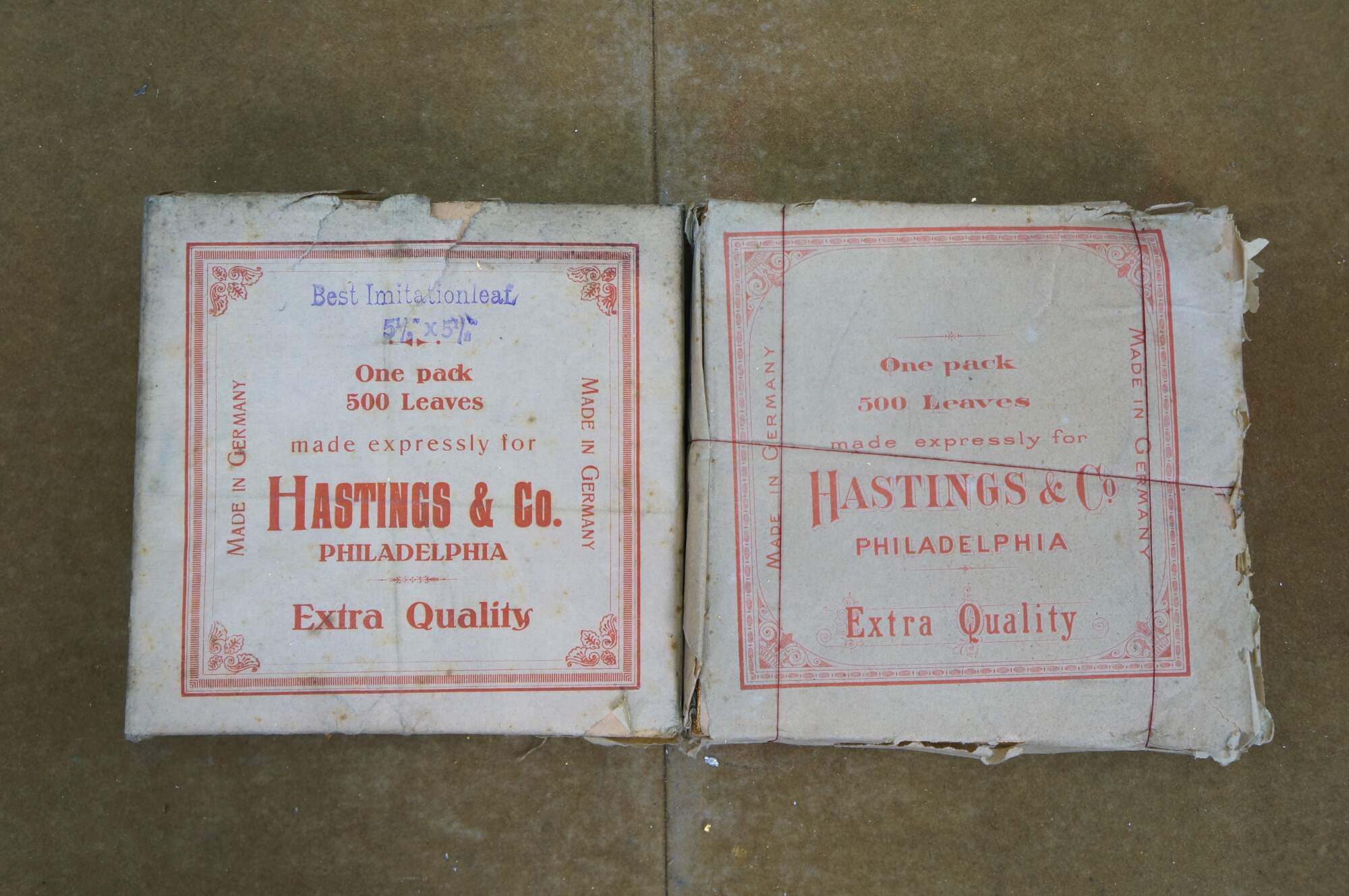 Includes: 11 intact packets (Hastings & Co, Made in Germany and Italy, 500 Sheets), 5 Open packets (equivalent in weight to intact packet), plus stack of loose sheets (1/2 weight of intact packet)