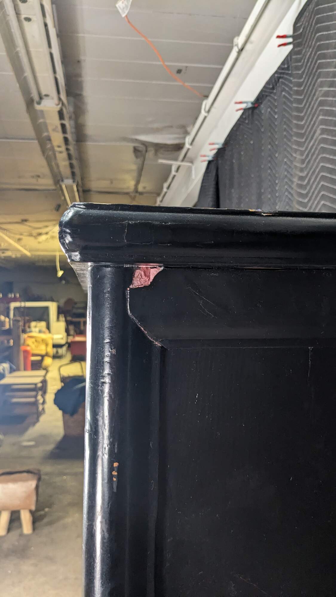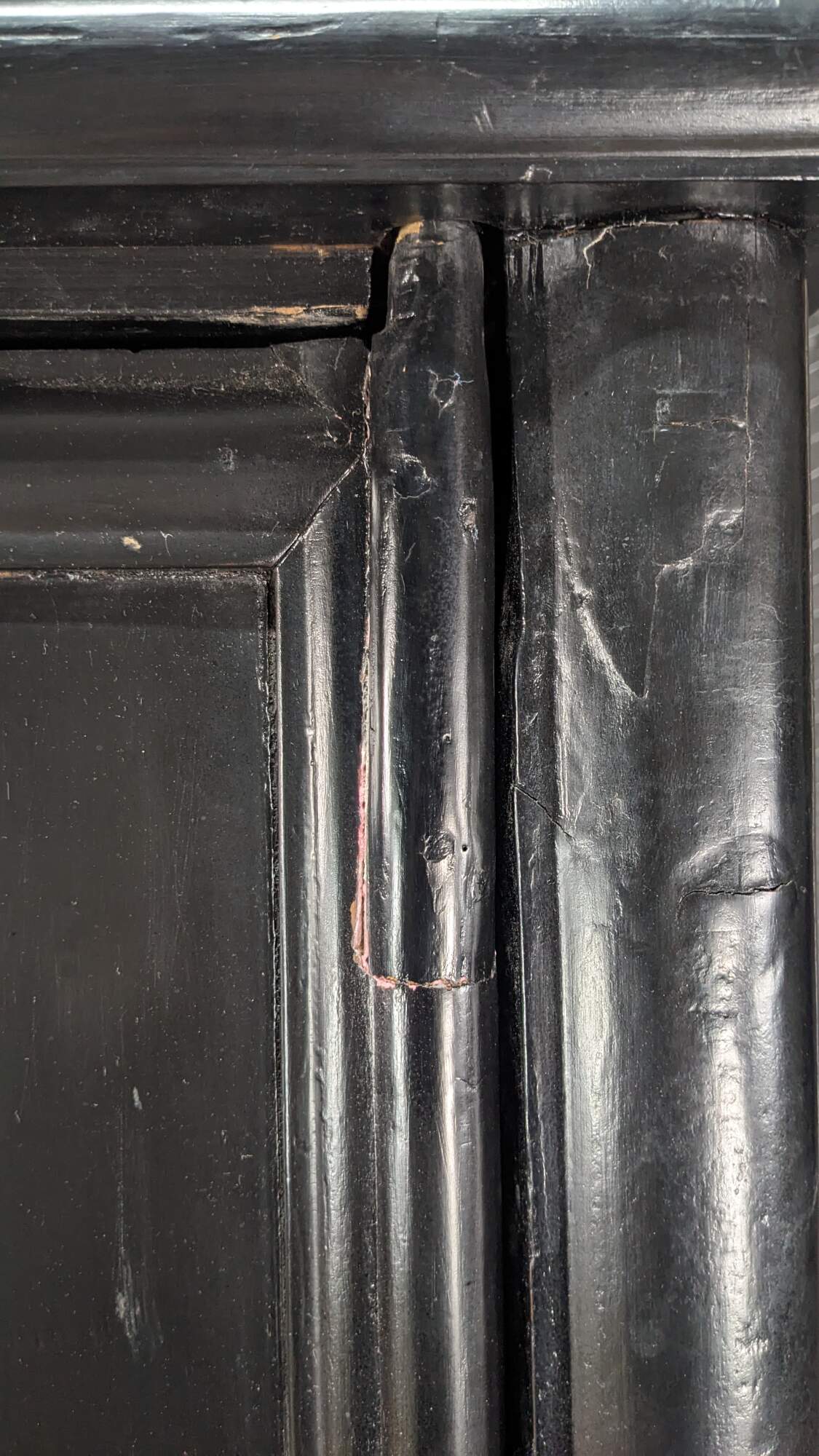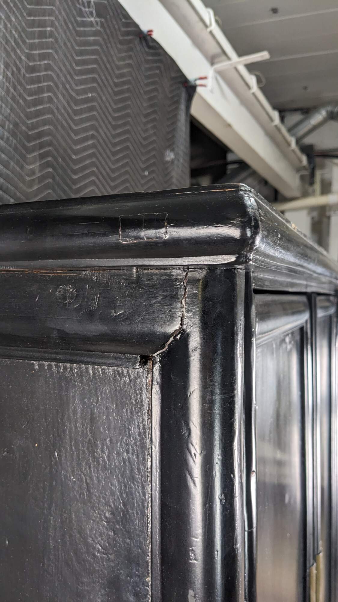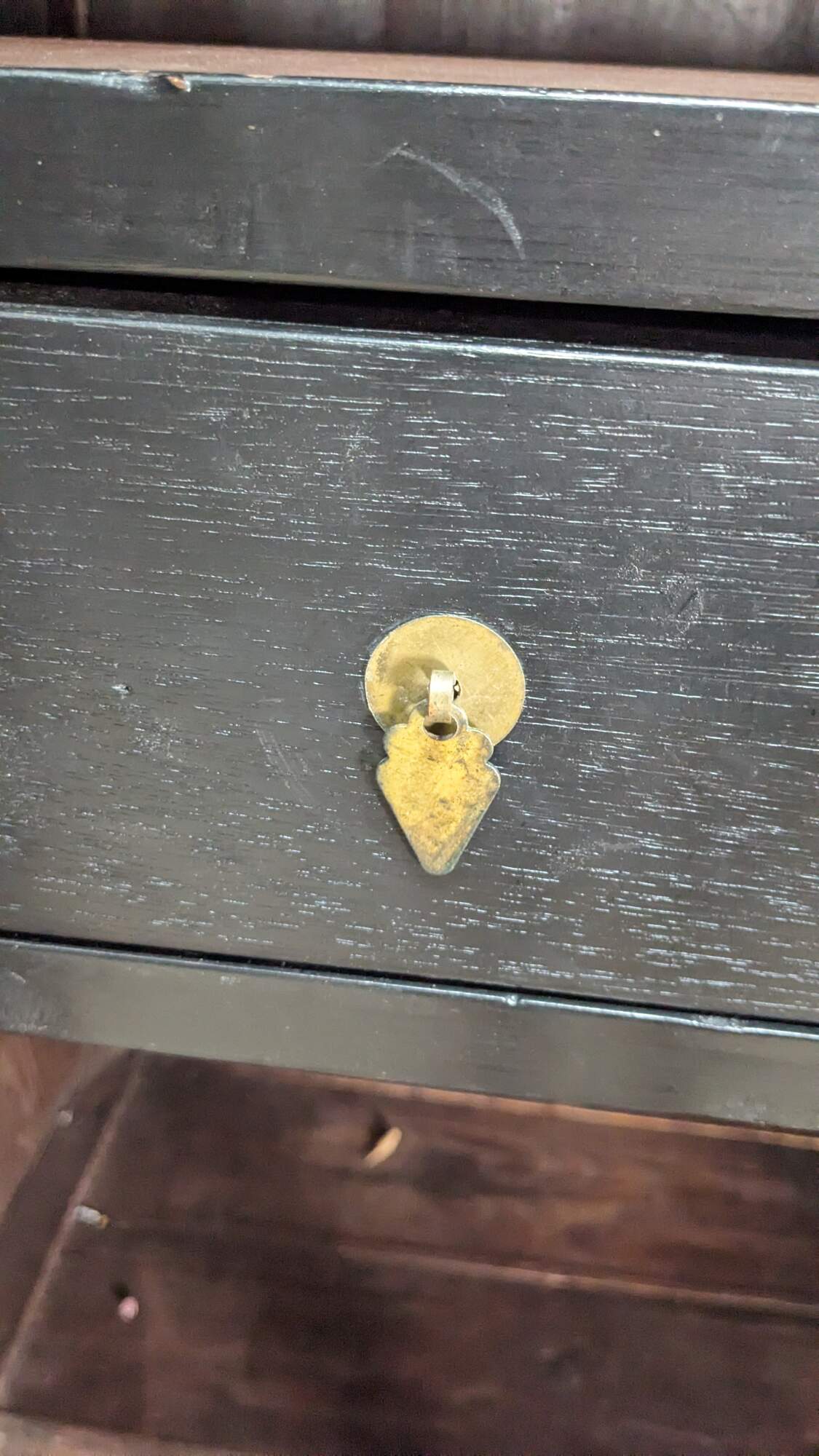 Good Overall; General wear from use and age. Distressing marking. Splitting and finish wear. A few chips or pieces of wood lost from age. Structurally Solid
