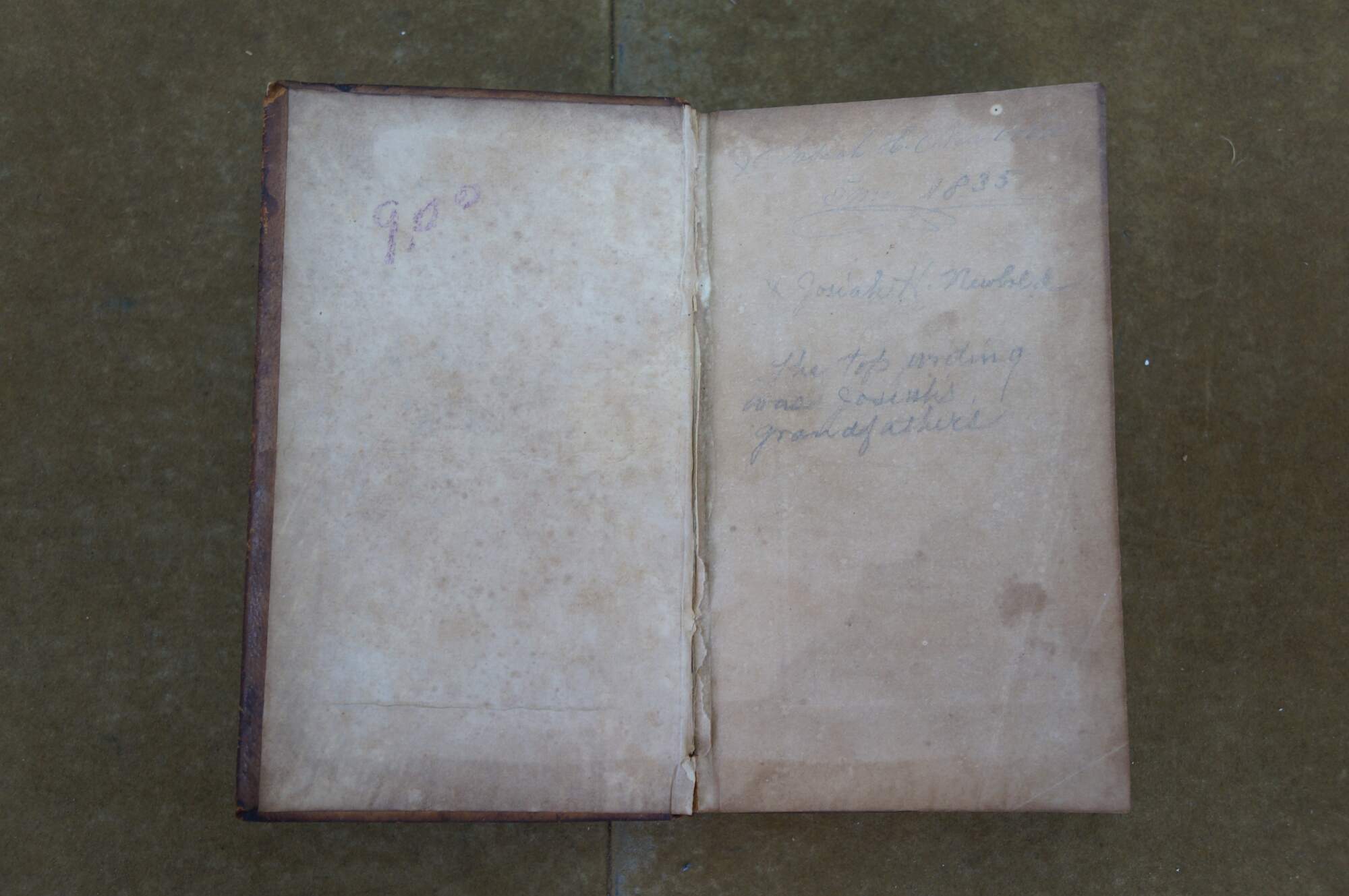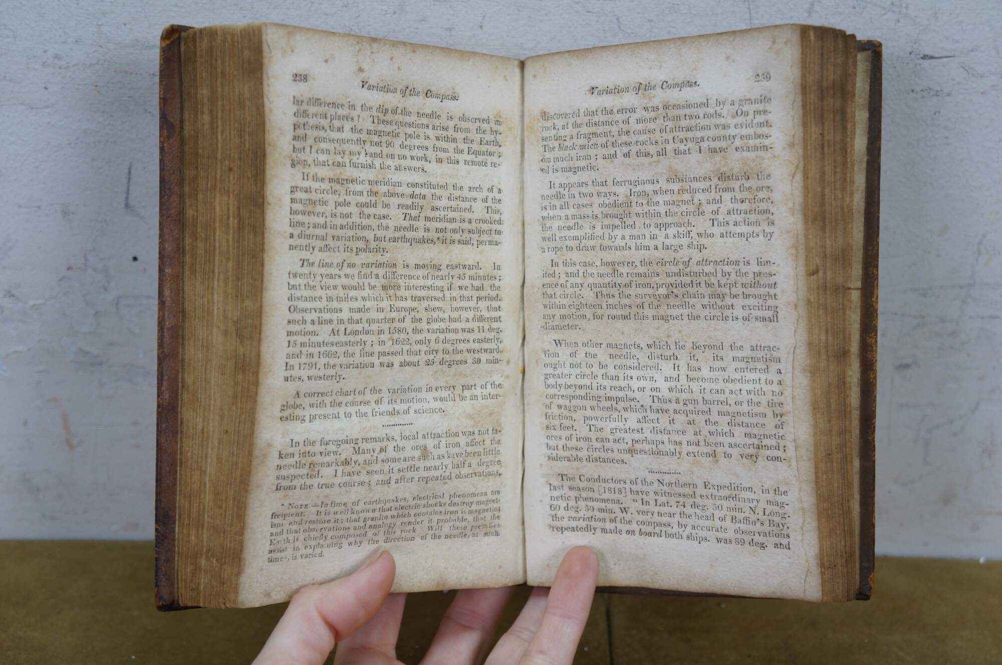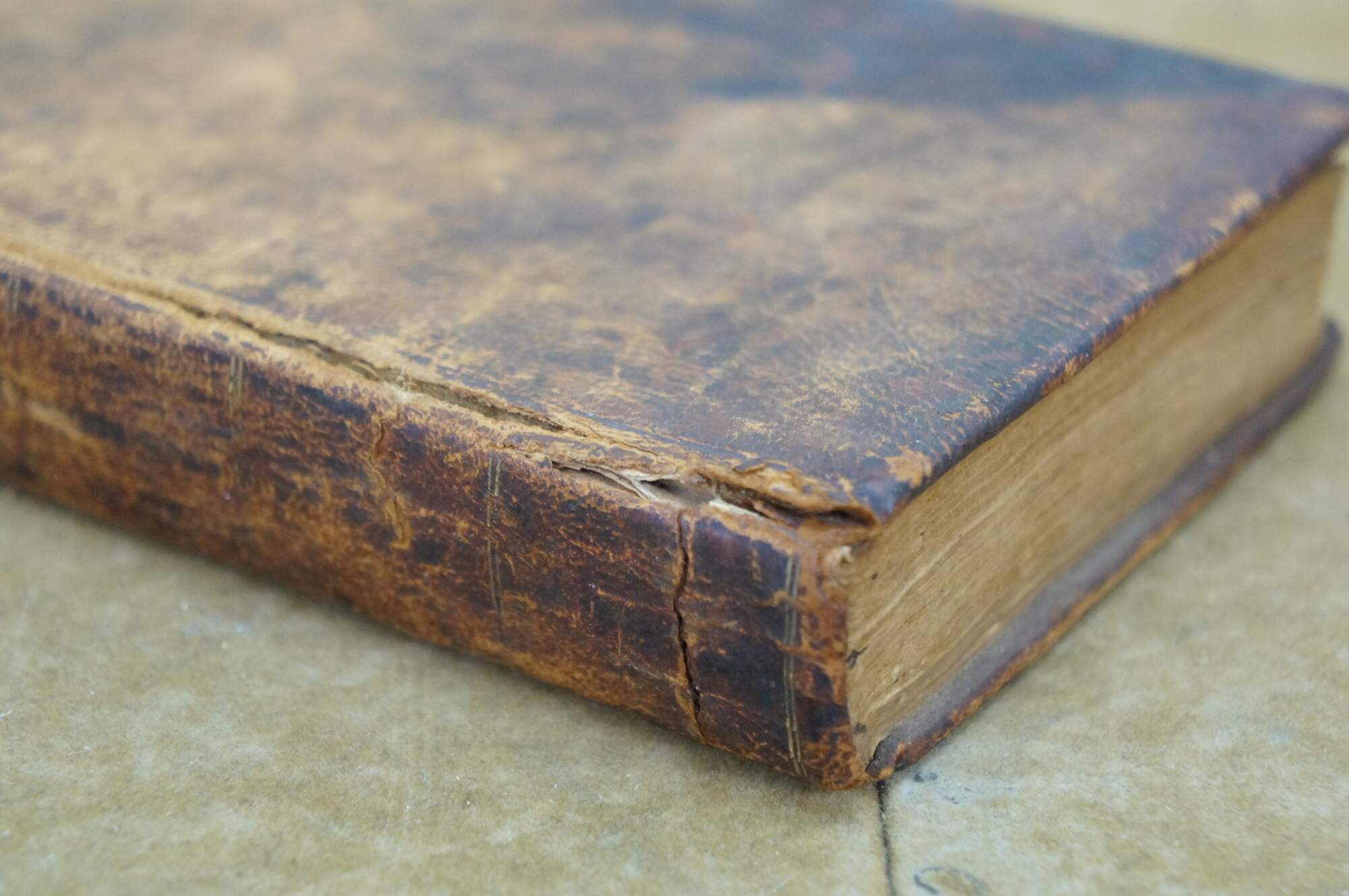 Spots/discoloration to pages; wear/stains to cover; split beginning at edges of spine; torn page.