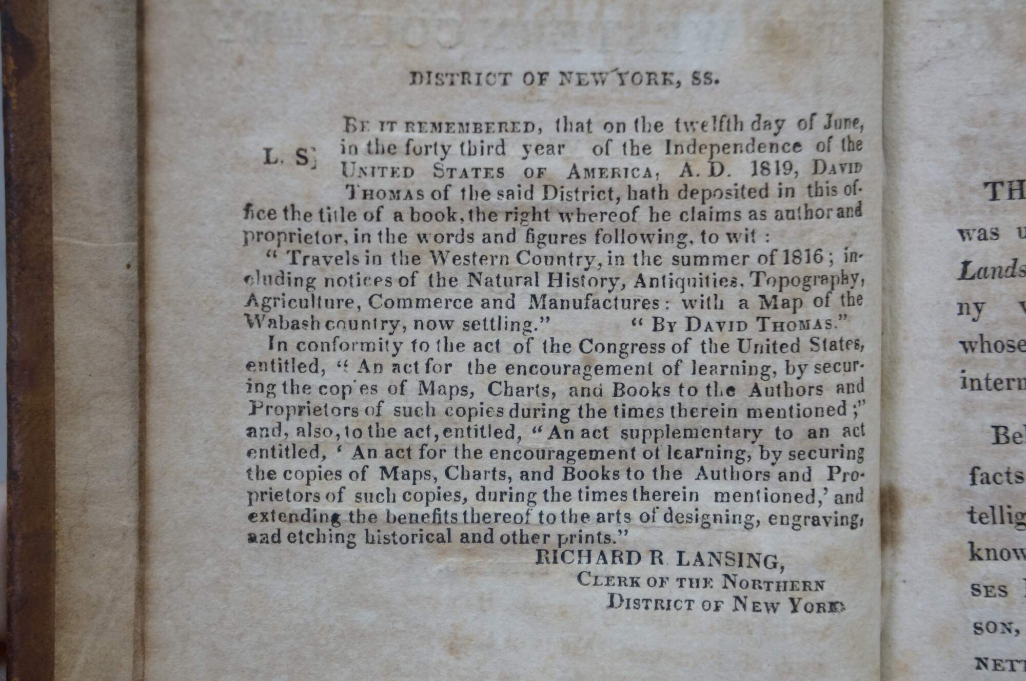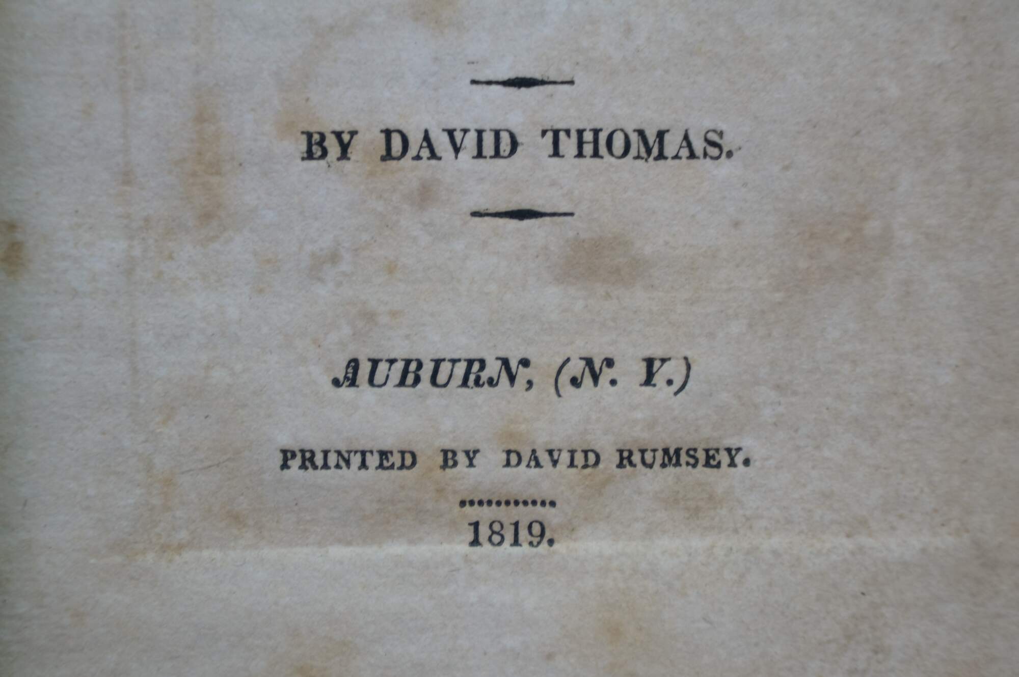 Travels Through the Western Country in the Summer of 1816 by David Thomas. Auburn, NY, Printed by David Rumsey, 1819.