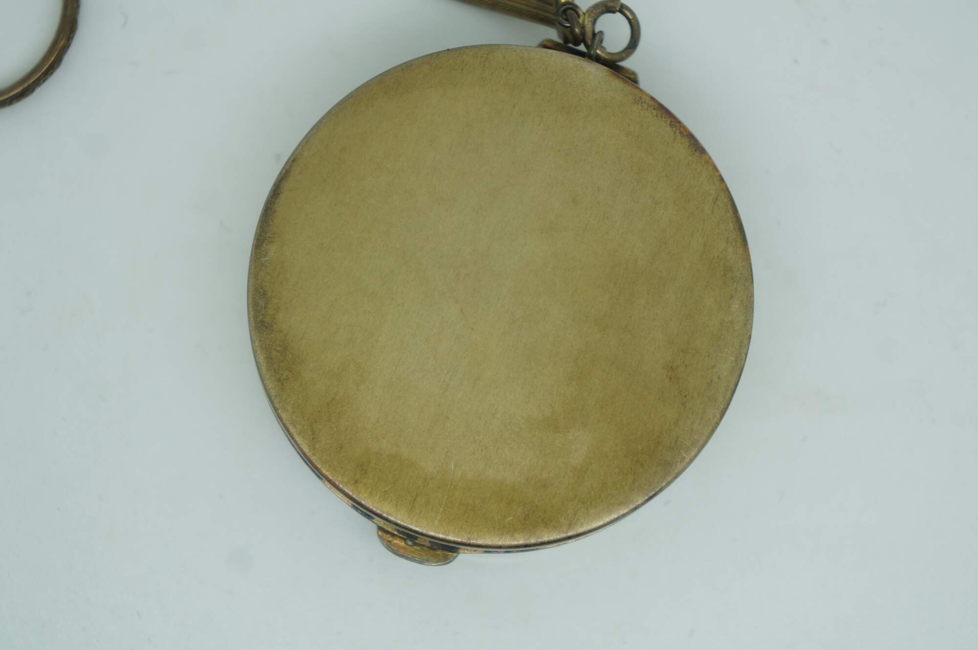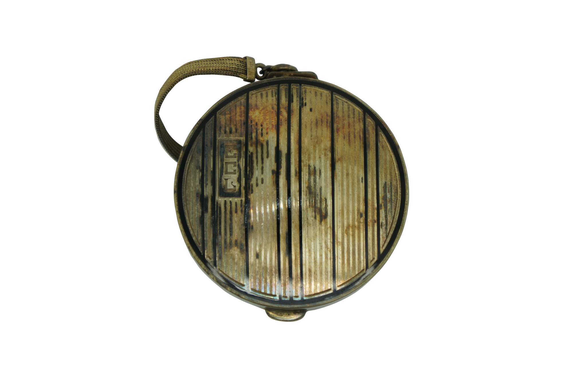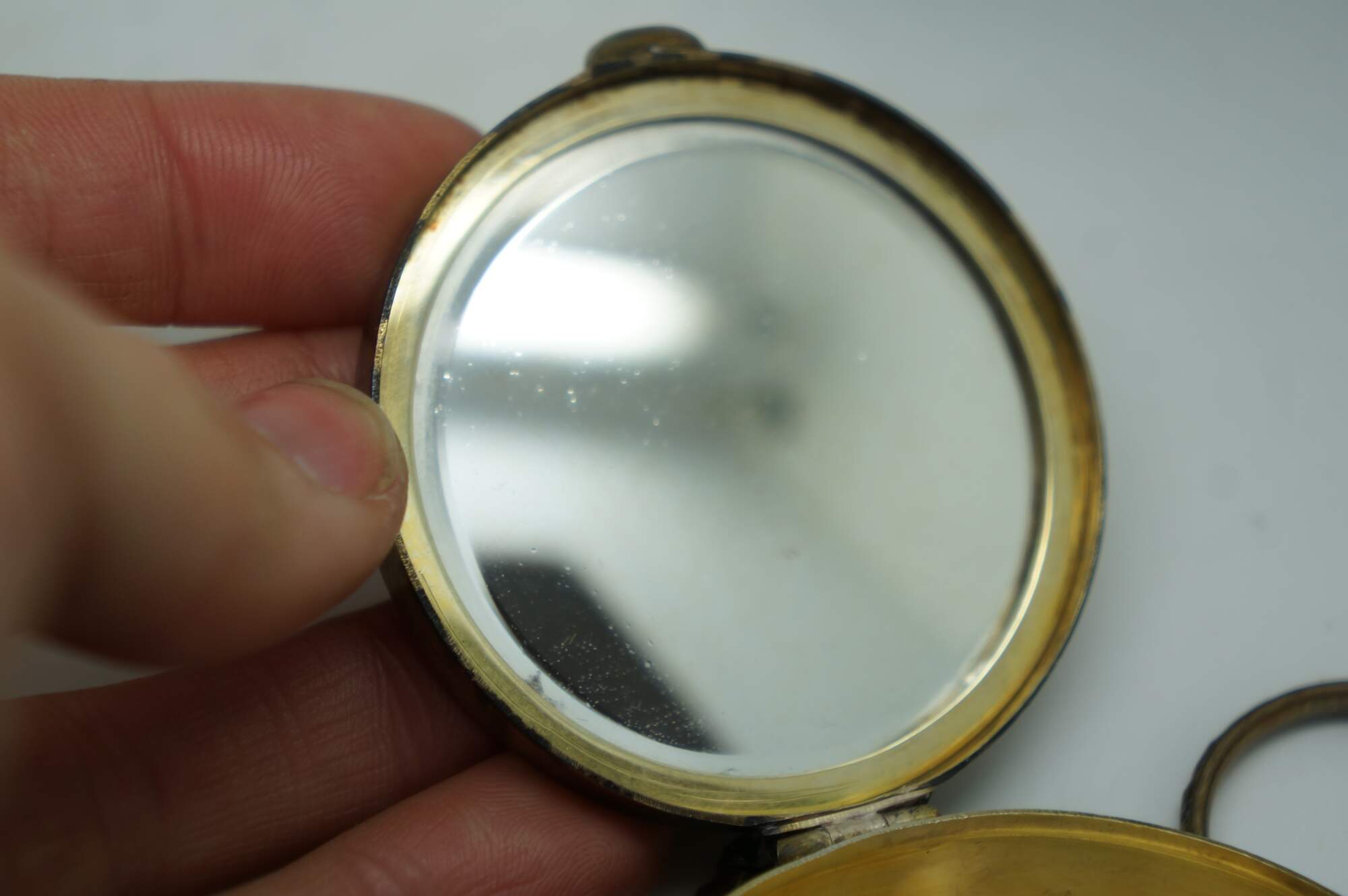 Antique art deco sterling silver makeup compact with mirror and keyring / chain. Marked with a crown, script T, and lion passant for Sheffield England. Monogram ECL,