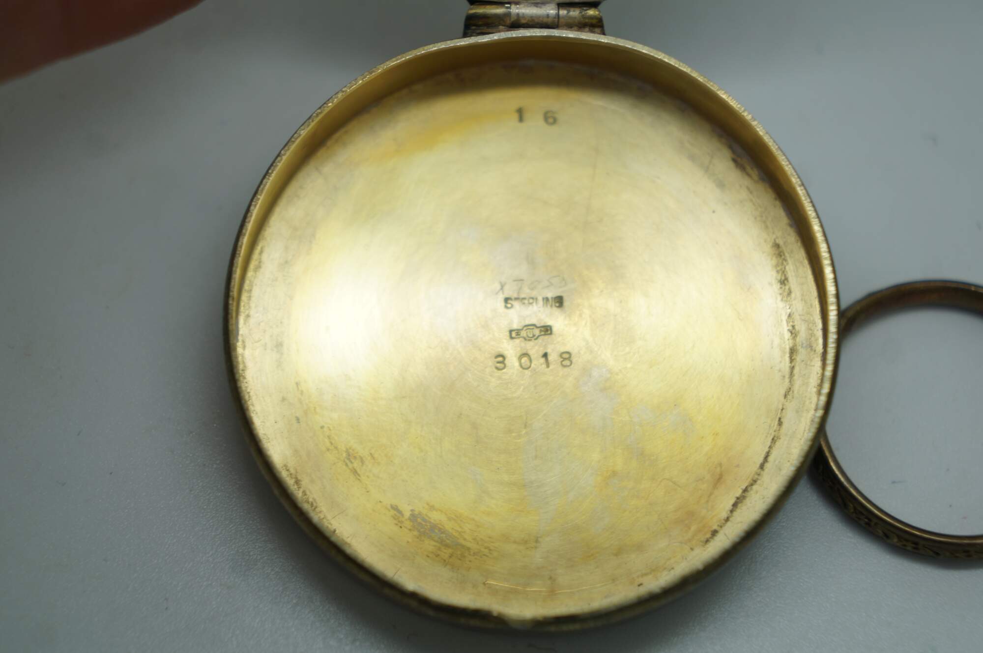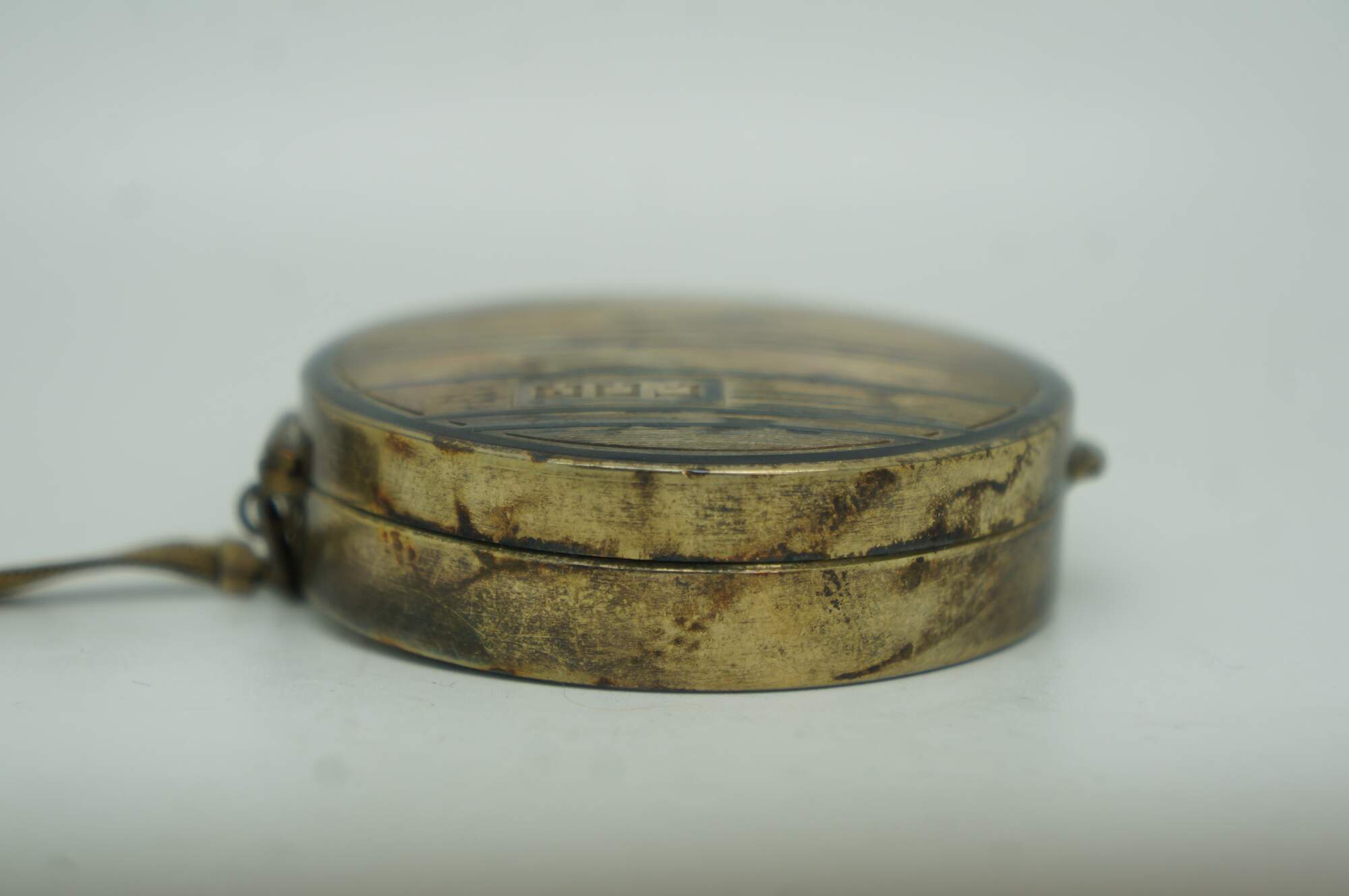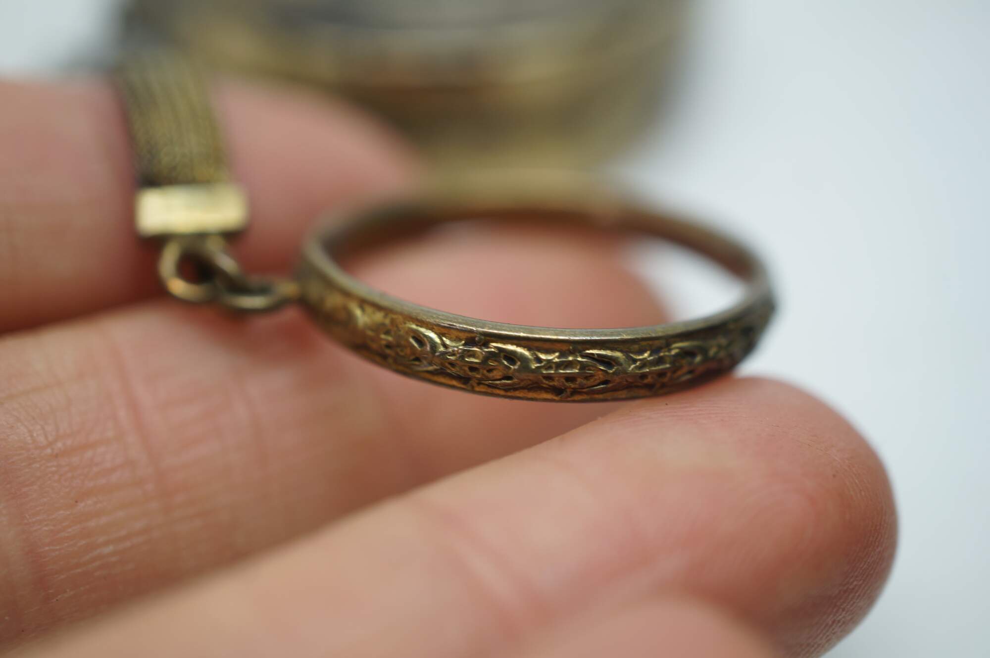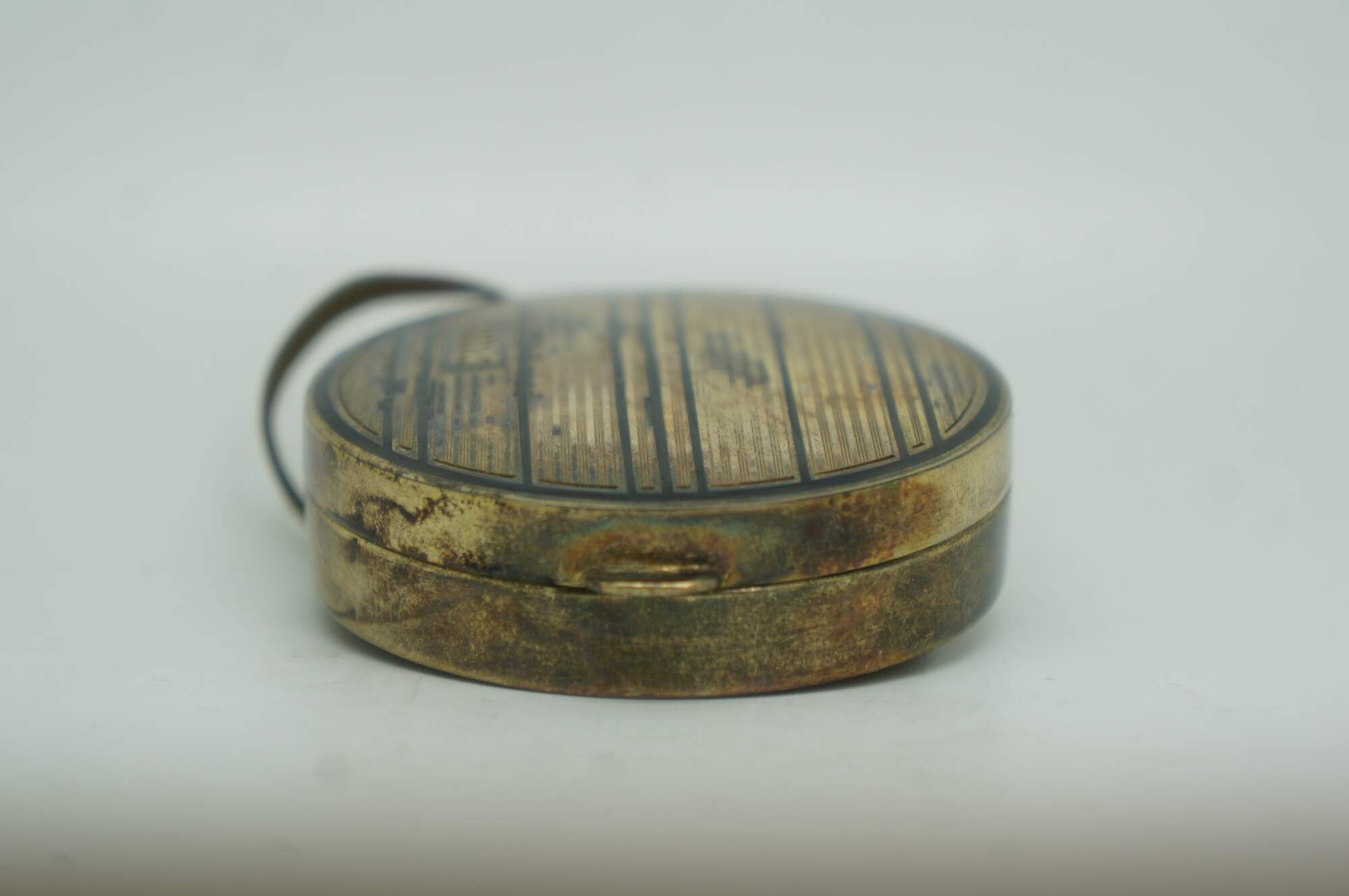Antique art deco sterling silver makeup compact with mirror and keyring / chain. Marked with a crown, script T, and lion passant for Sheffield England. Monogram ECL,