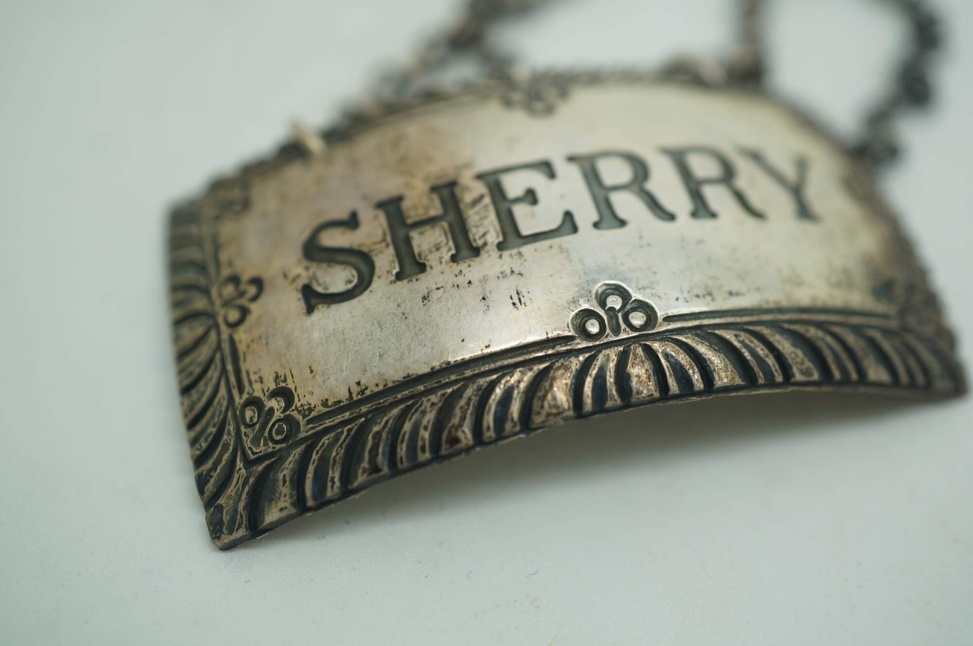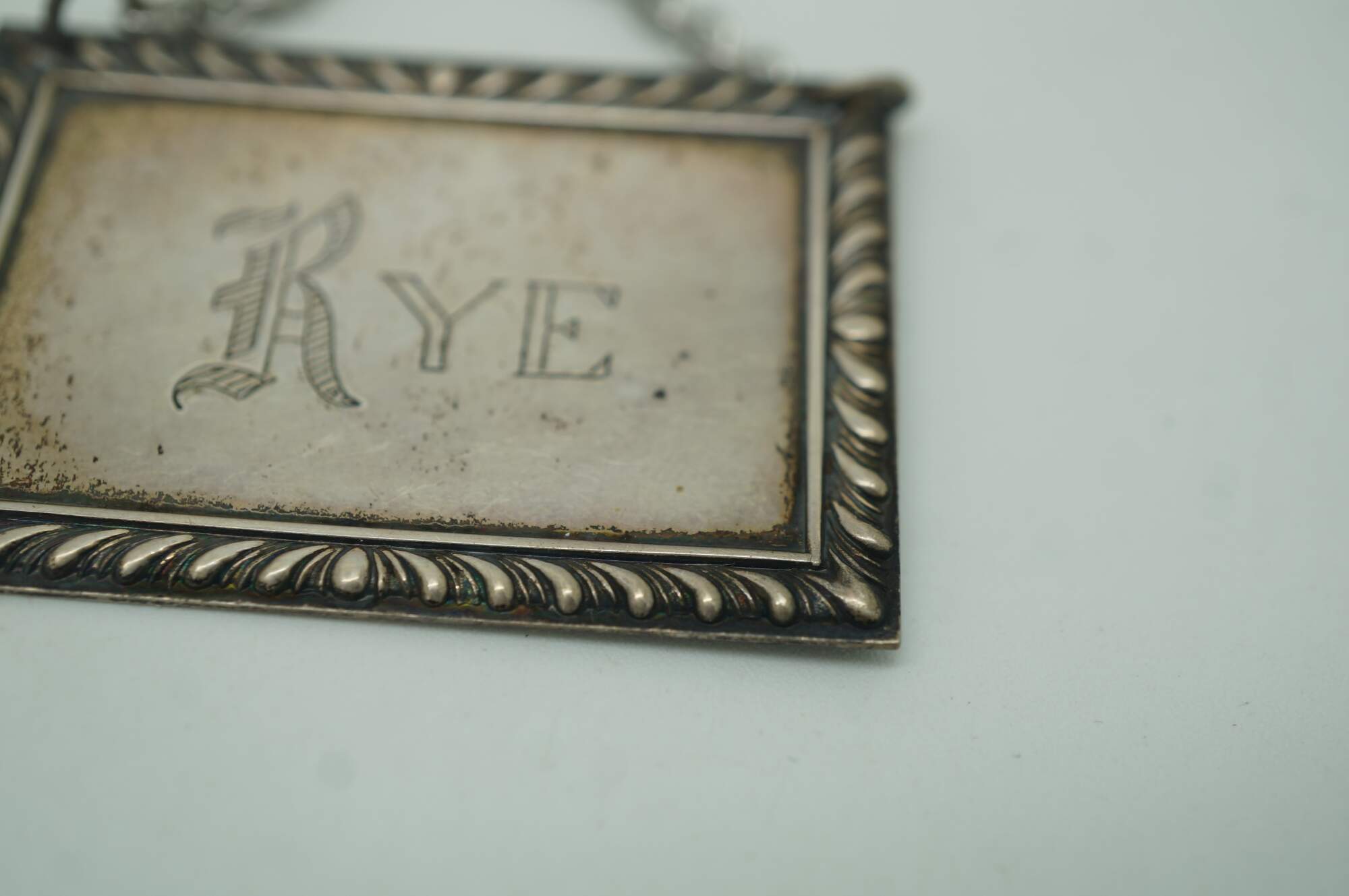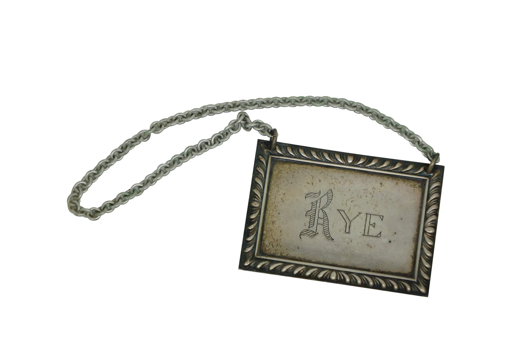 Five antique sterling silver 925 liquor decanter bottle badges / labels / plaques.