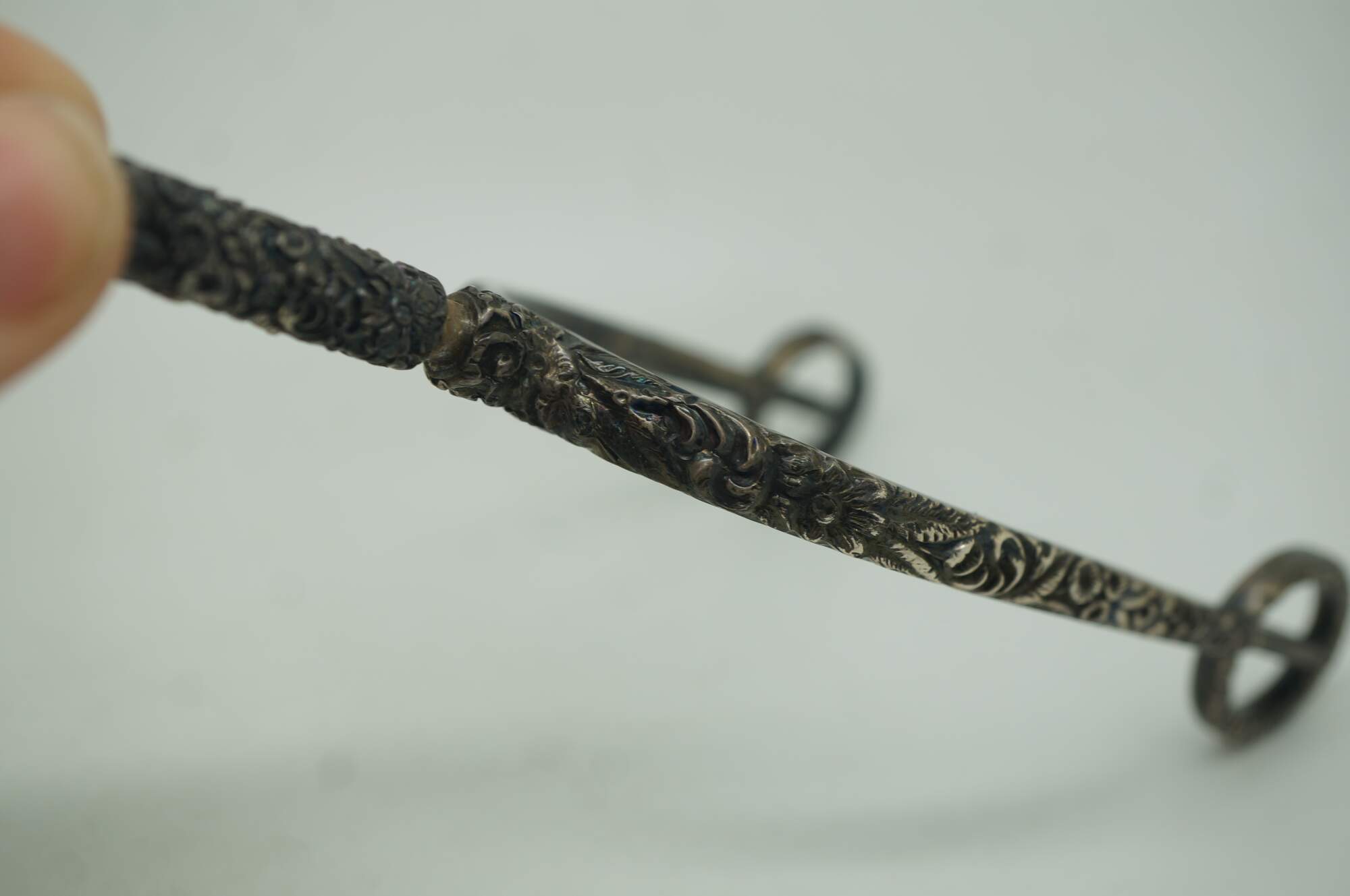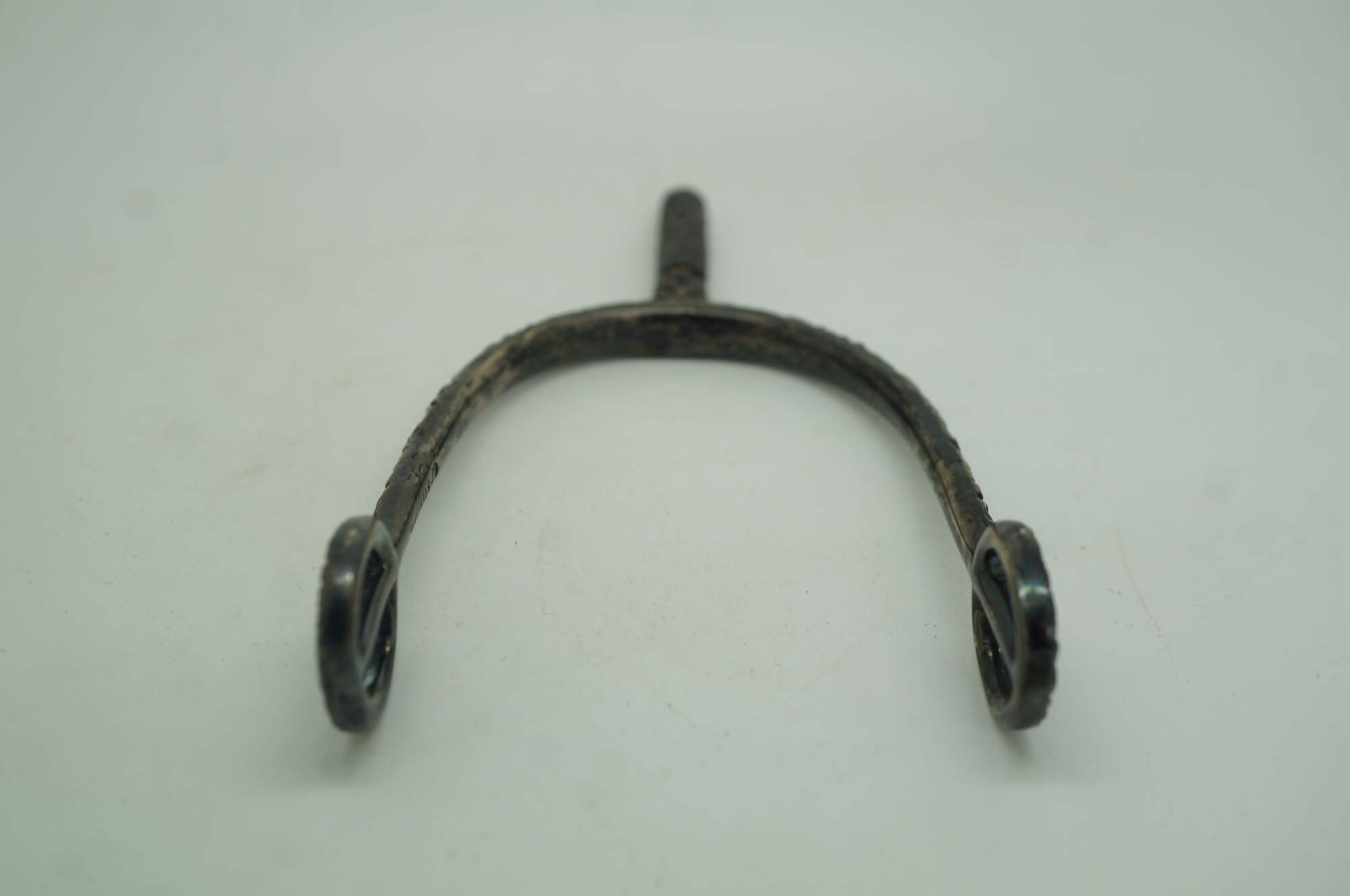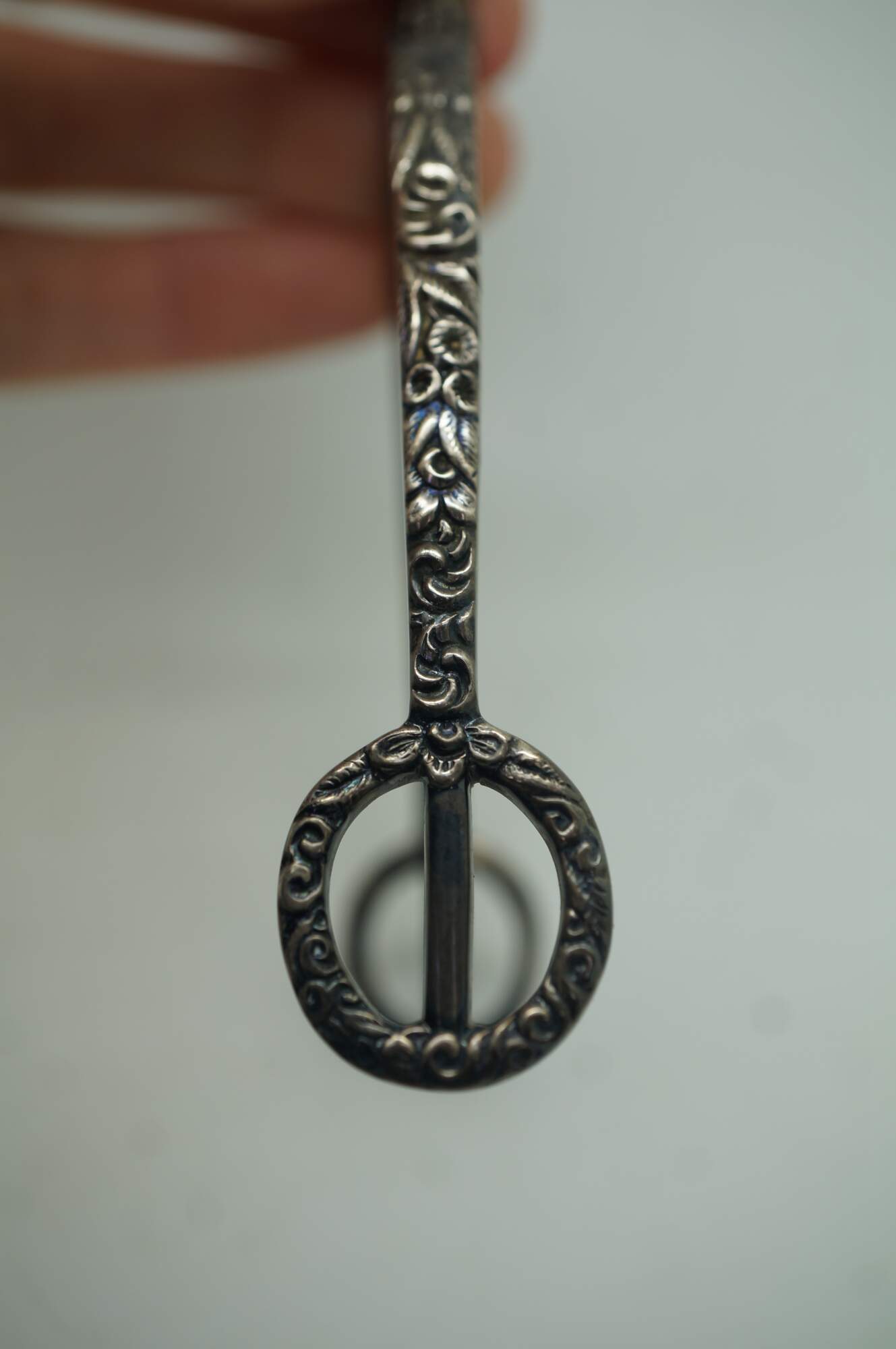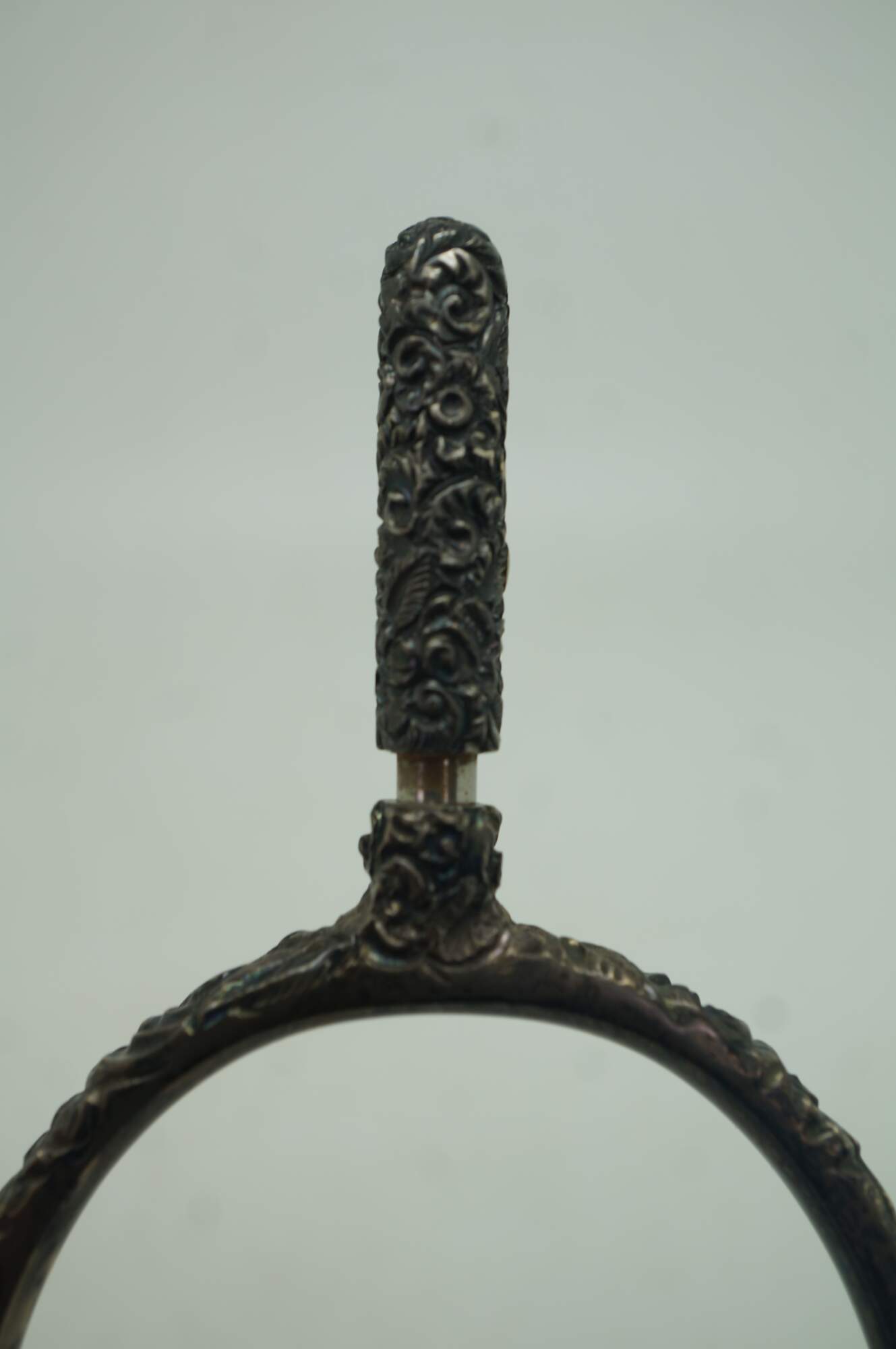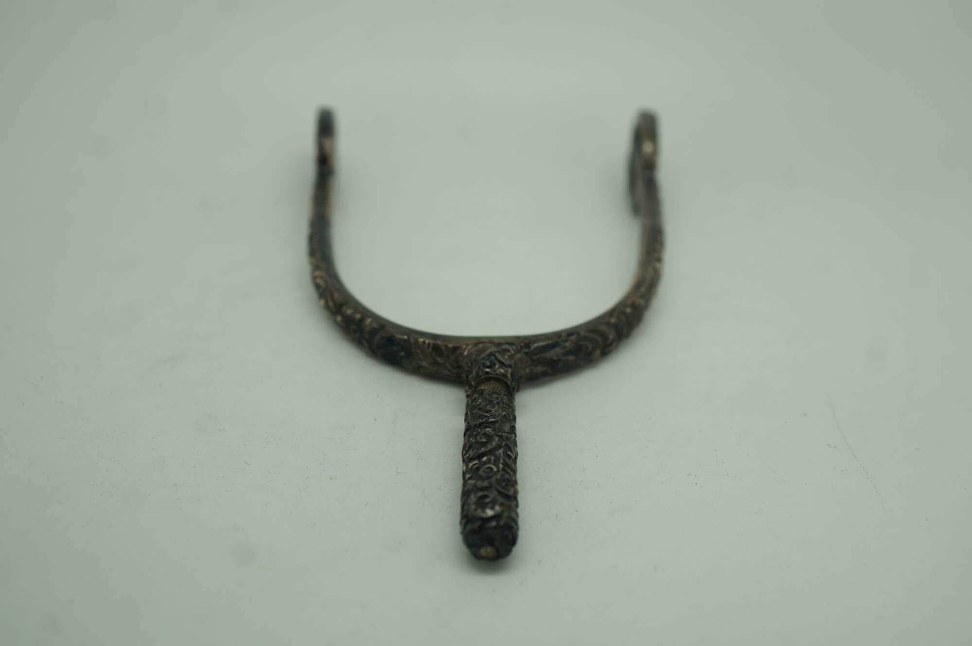 Antique repousse sterling silver equestrian horse spur featuring an ornate floral design with removable screw top. Circa pre civil war / late 19th century.