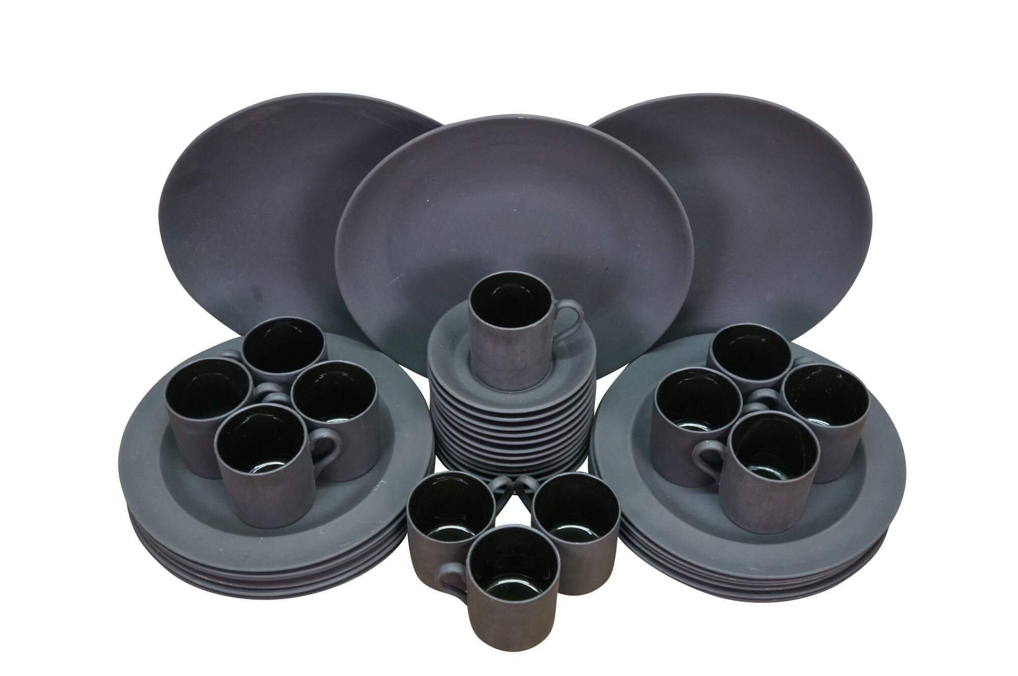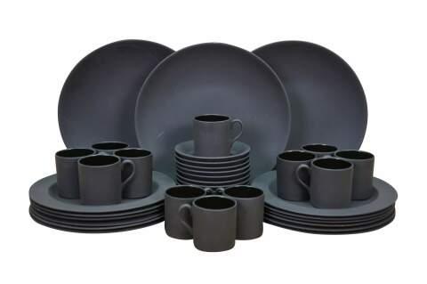 Thirty nine pieces of black Basalt Wedgwood china.