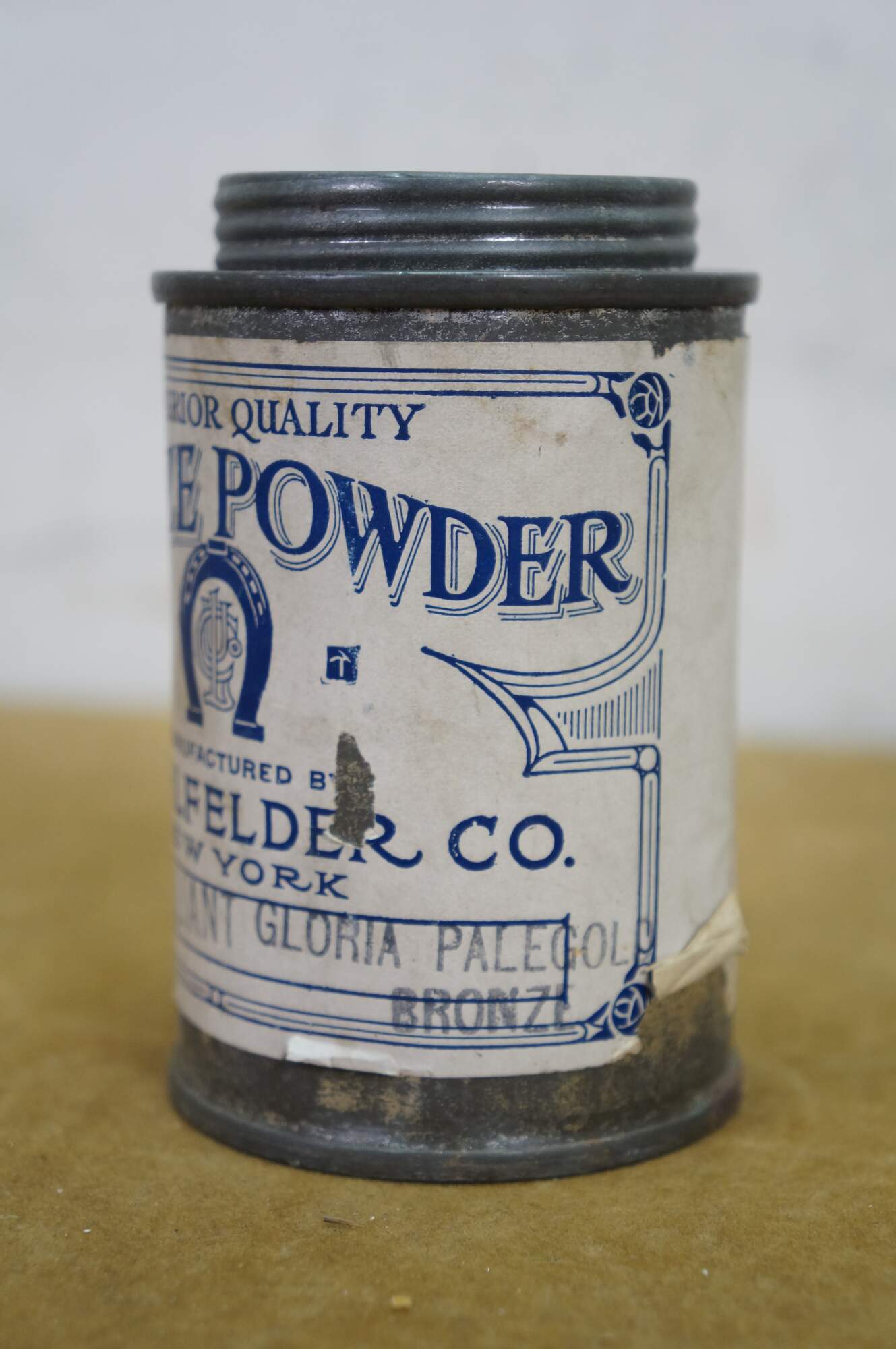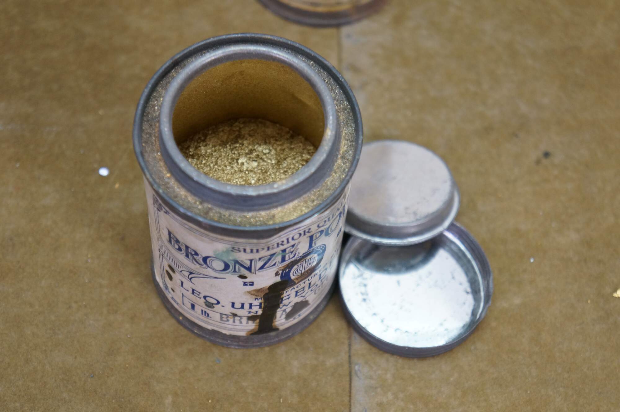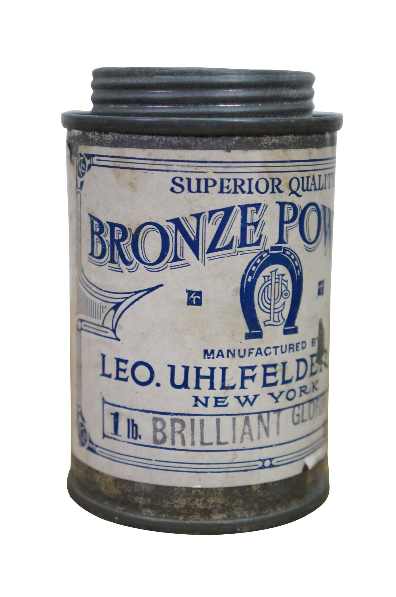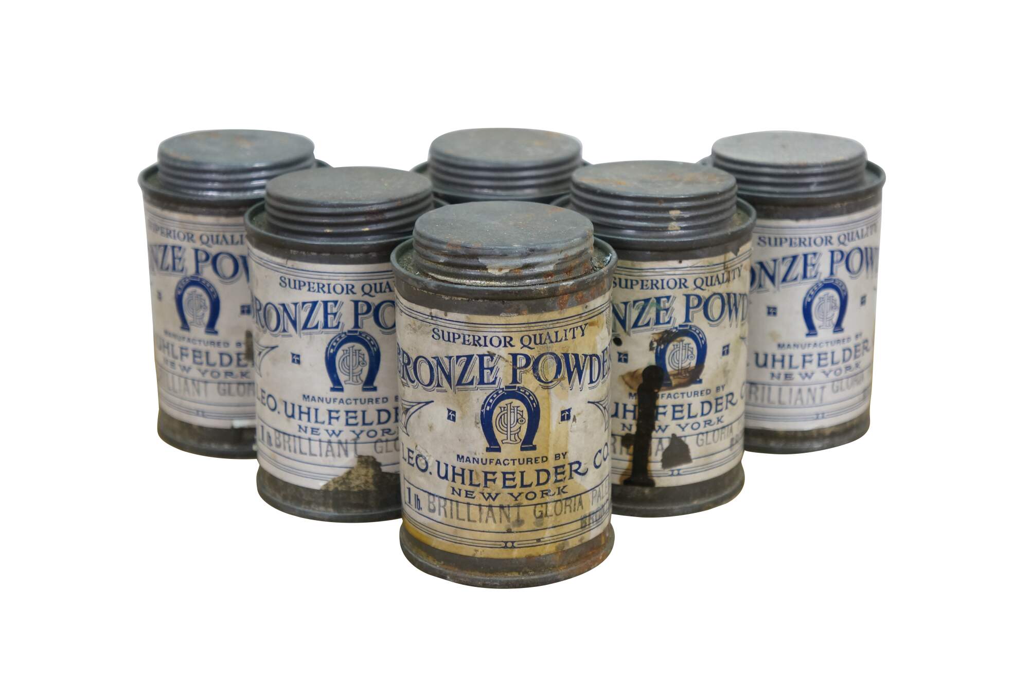 6 Cans Leo. Uhlfelder Co Brilliant Gloria Pale Gold Bronze Powder (four full, two mostly full)