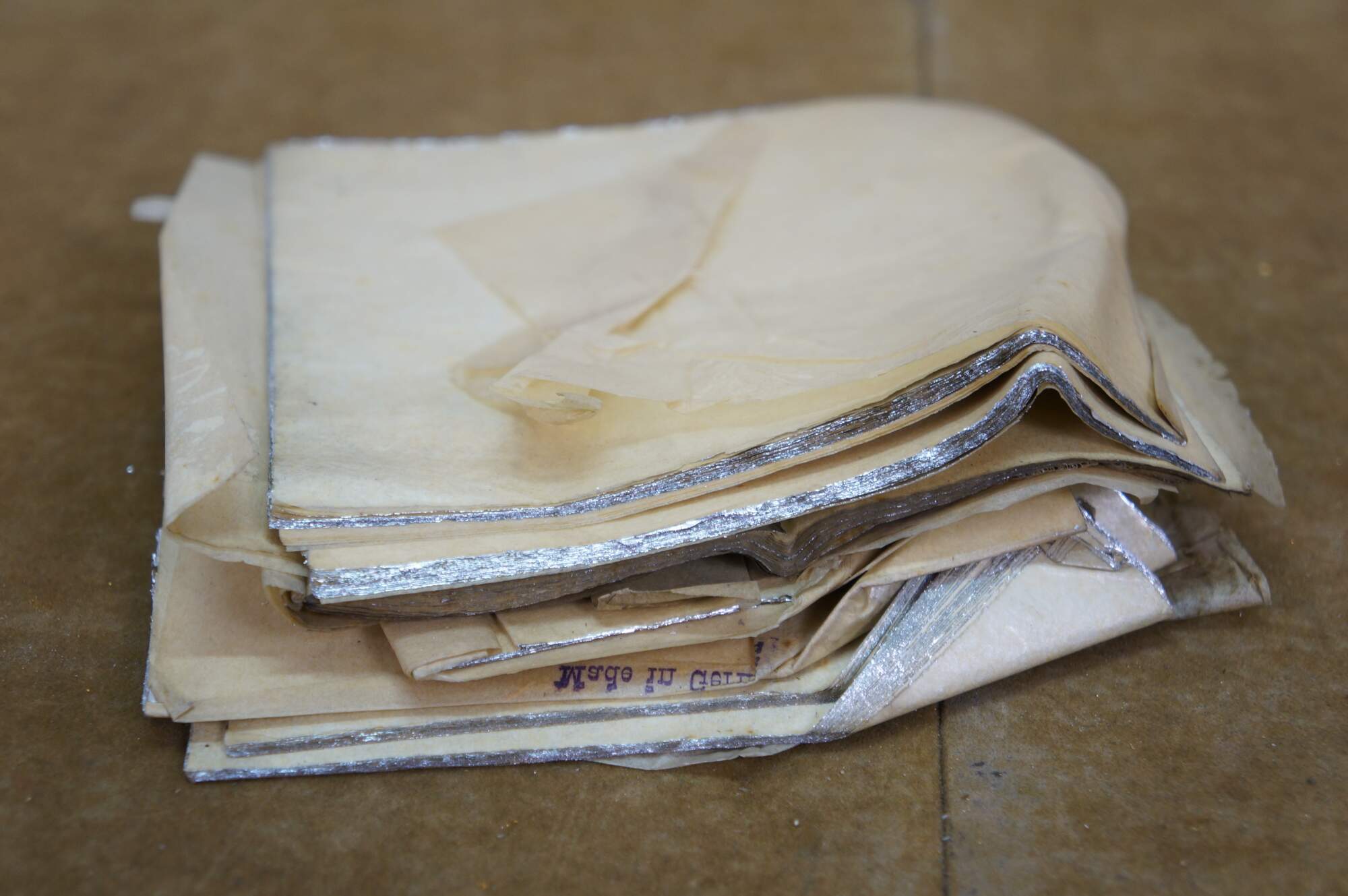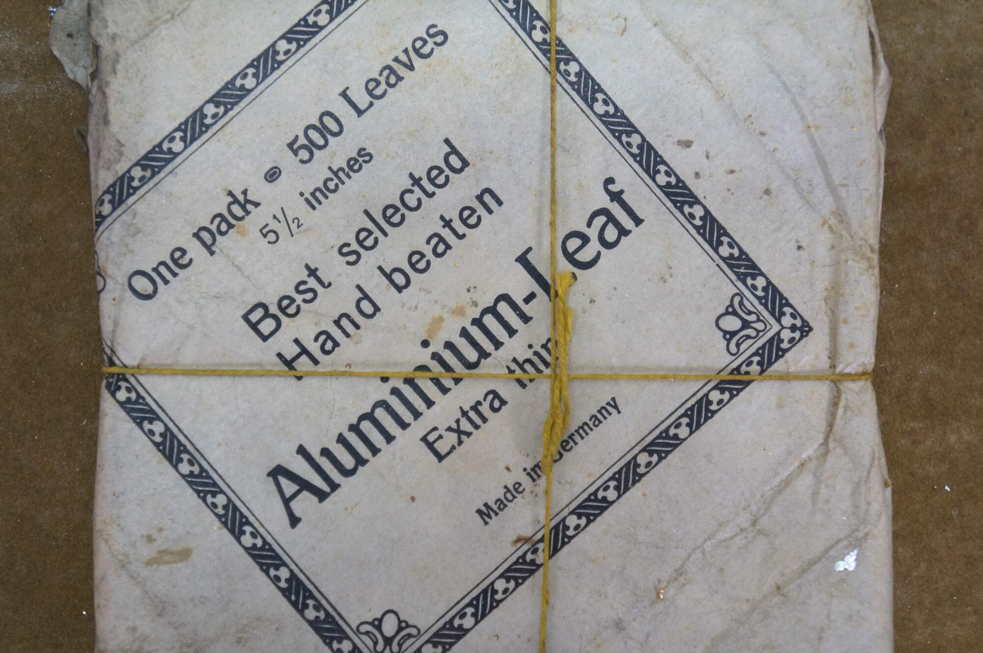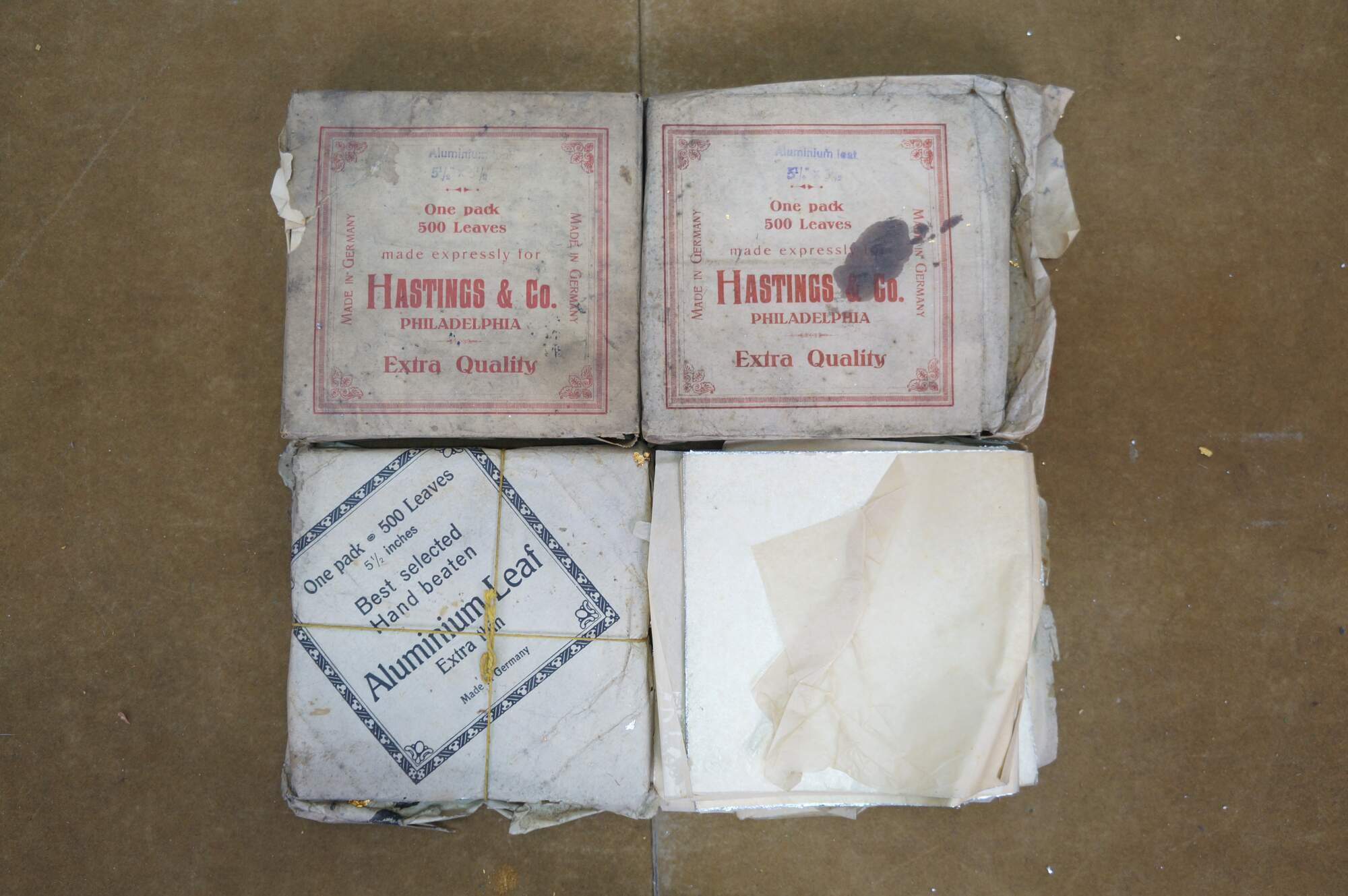 3 Packets Aluminum Leaf (2 Hastings & Co, 500 Sheets, intact; one opened, plus selection of loose sheets adding to full quantity by weight)