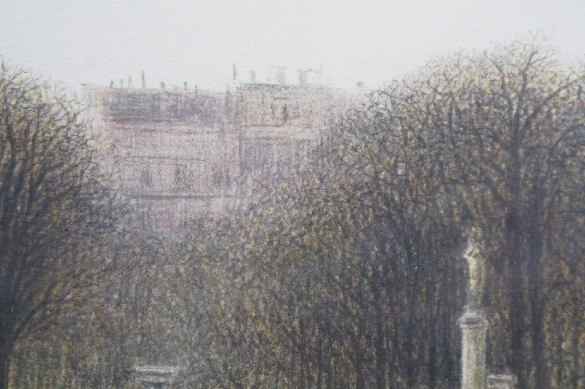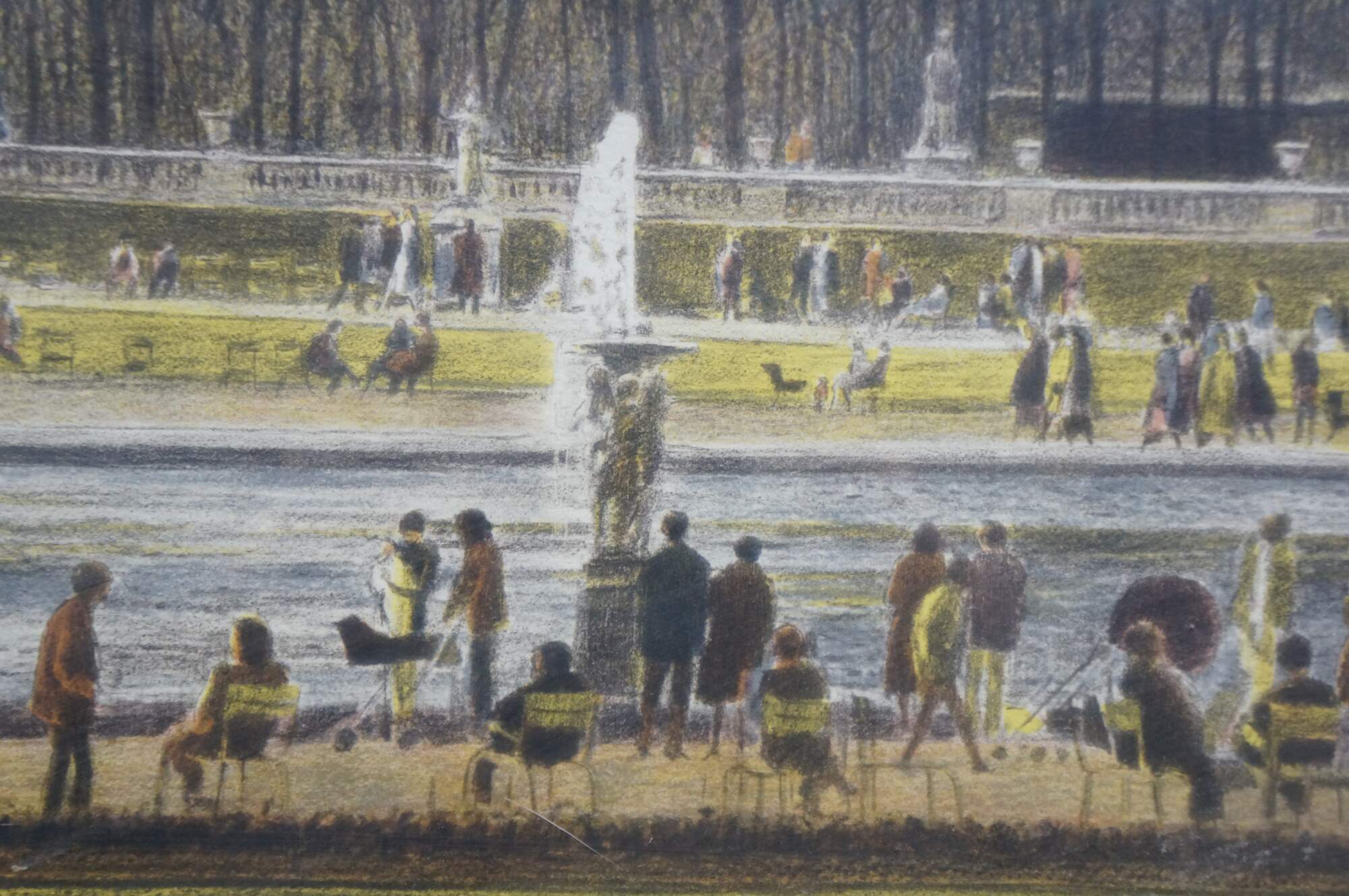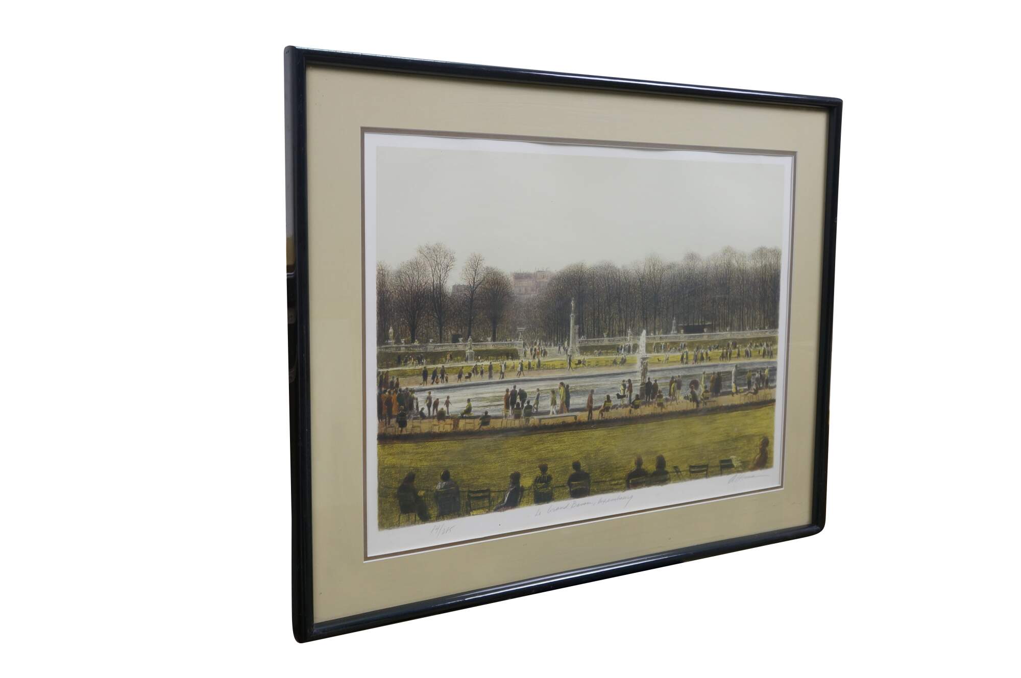 Vintage signed lithograph titled Le Grand Bassin, Luxembourg by American artist Harold Altman.� Harold Altman (1924–2003), a recognized American printmaker known for his park scenes. The artwork depicts the grand fountain pond in the Jardin du Luxembourg in Paris France. The print is hand signed and numbered by the artist. 84 / 285 circa 1983.