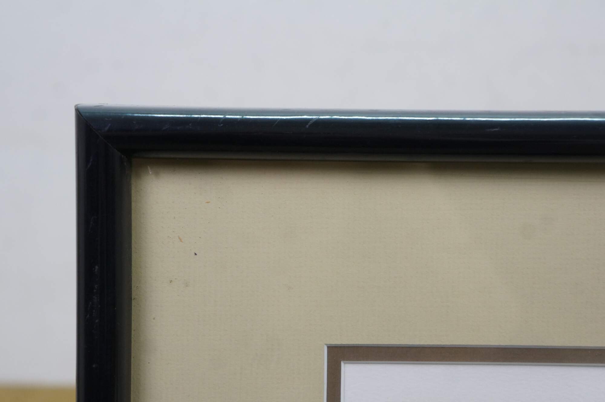 Wood frame with plastic molding.