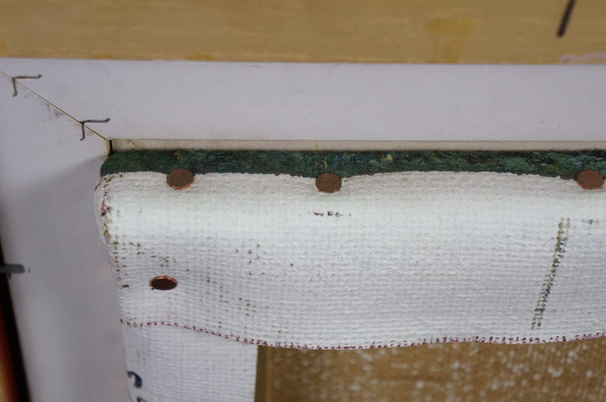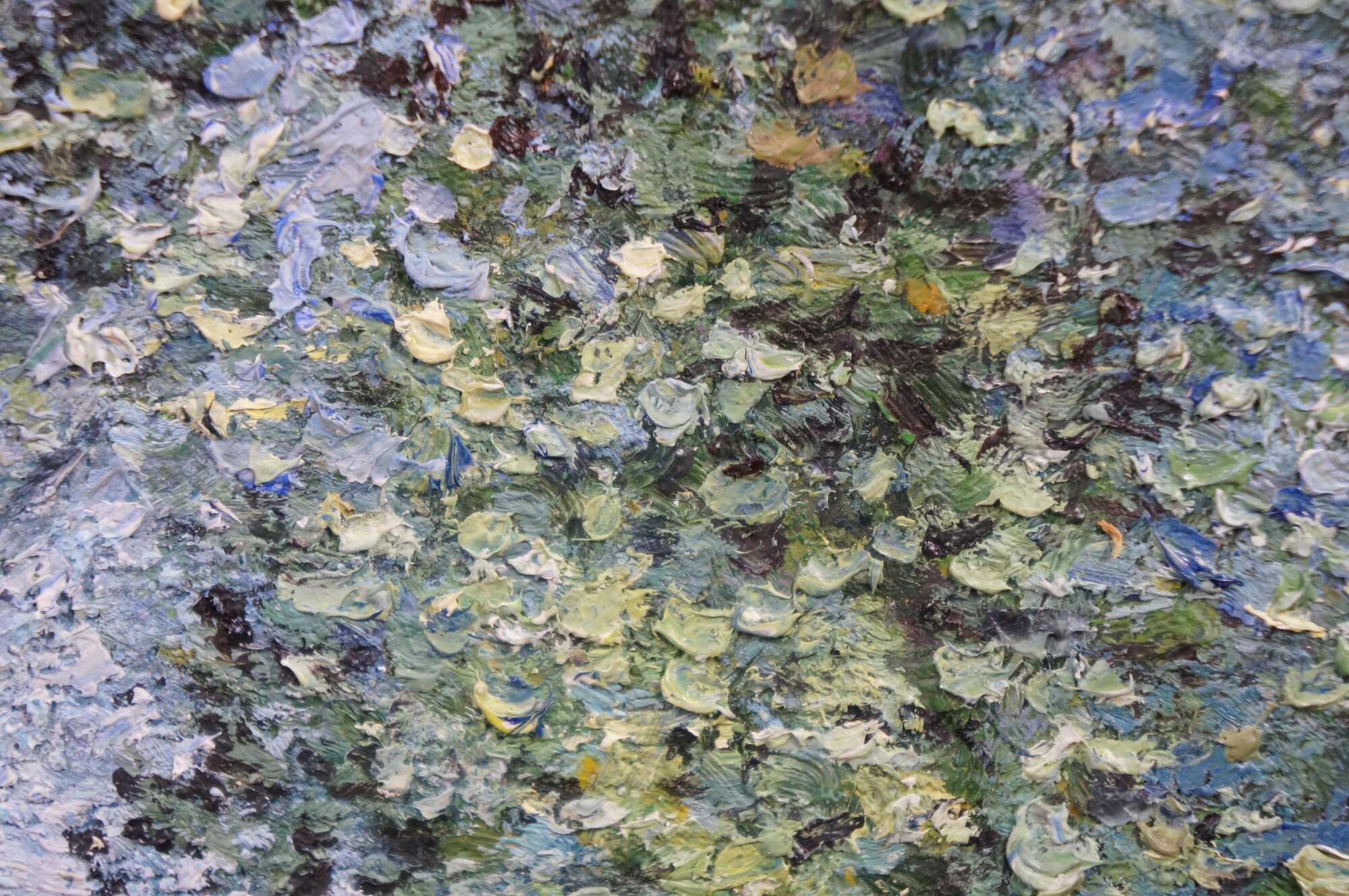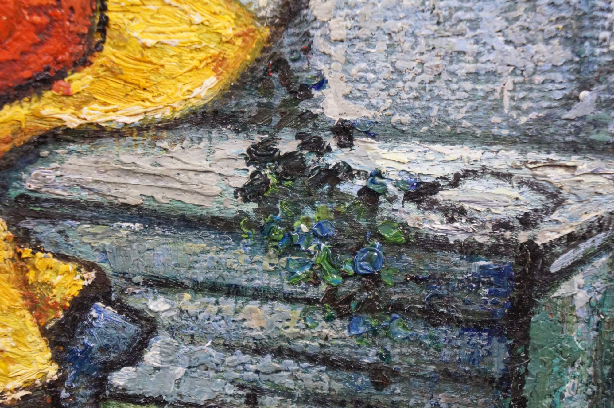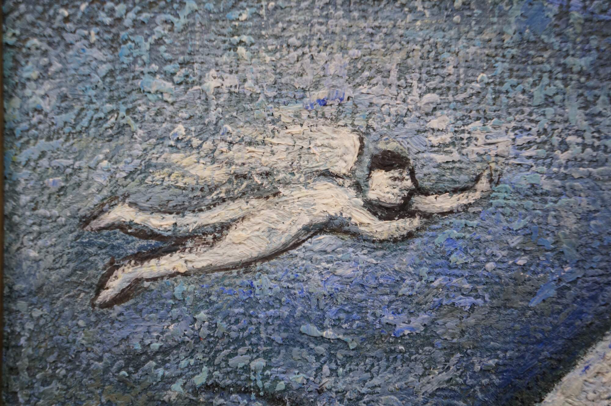 Vintage oil painting on burlap canvas titled The Lovers after Marc Chagall.�