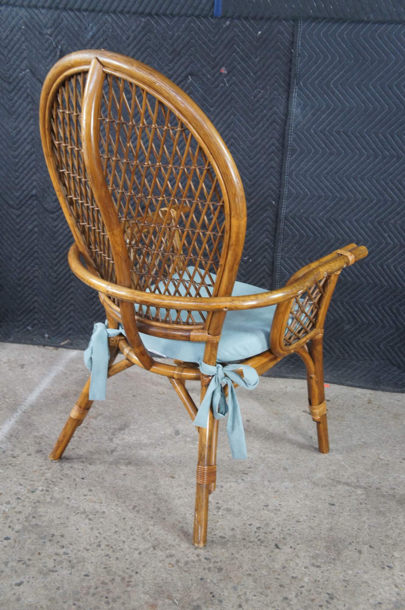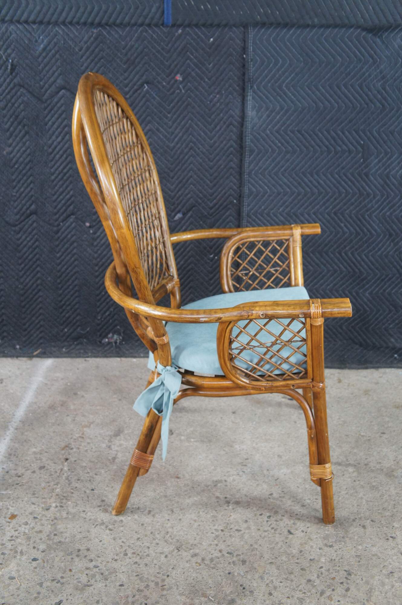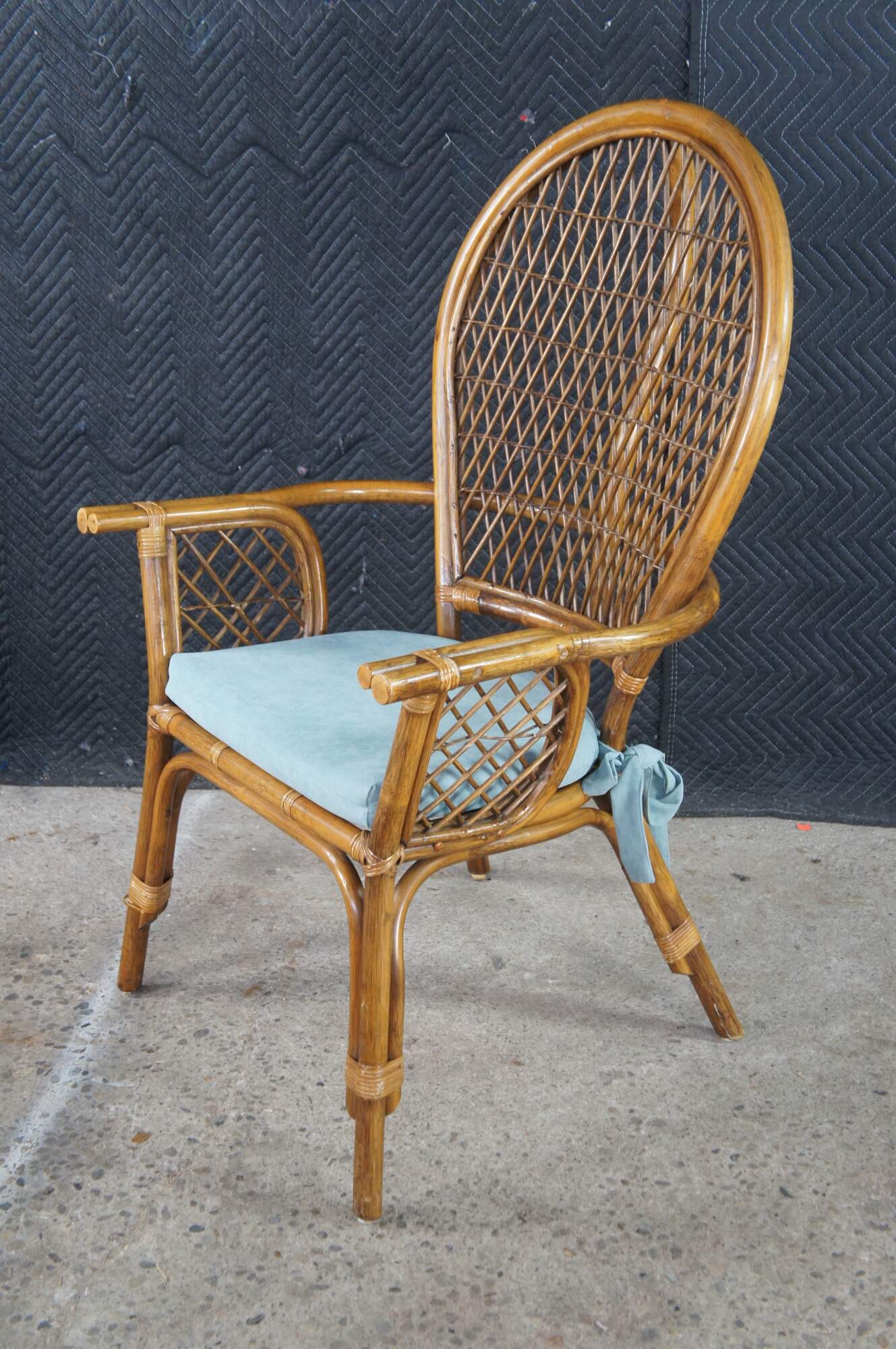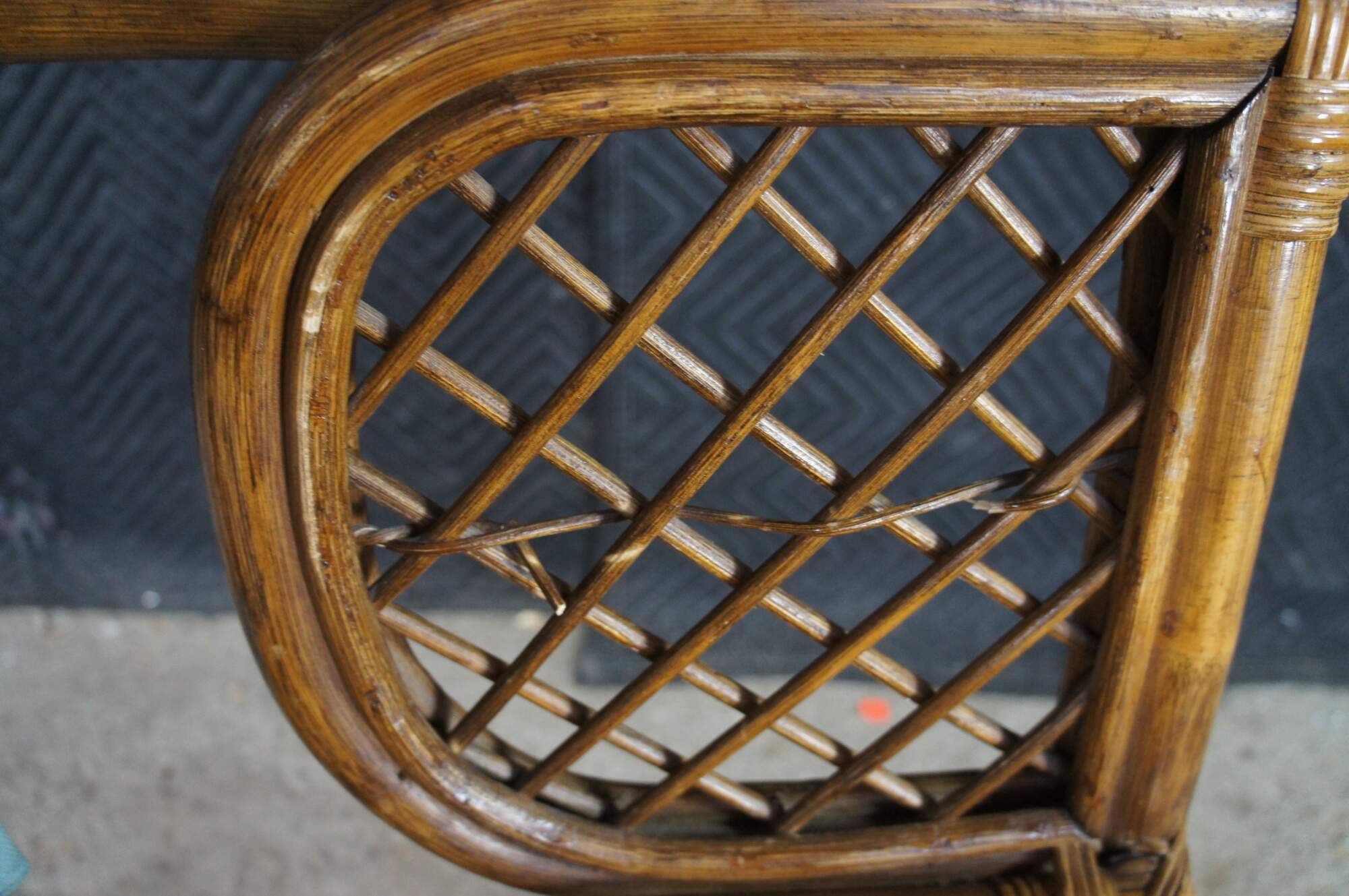 Good Vintage Condition; some loose and broken pieces of rattan.