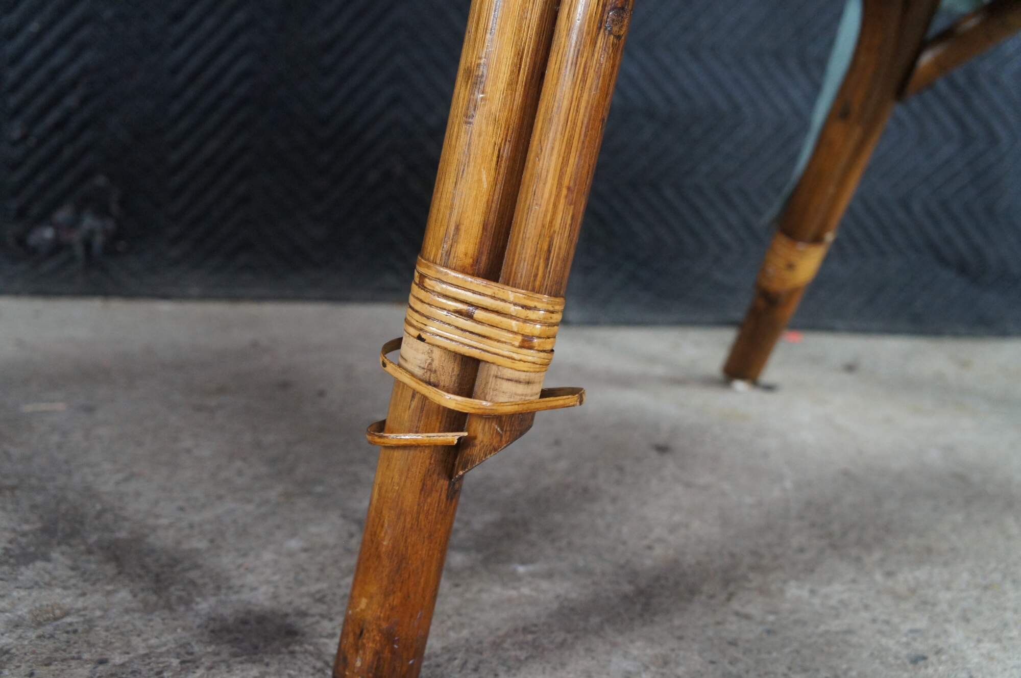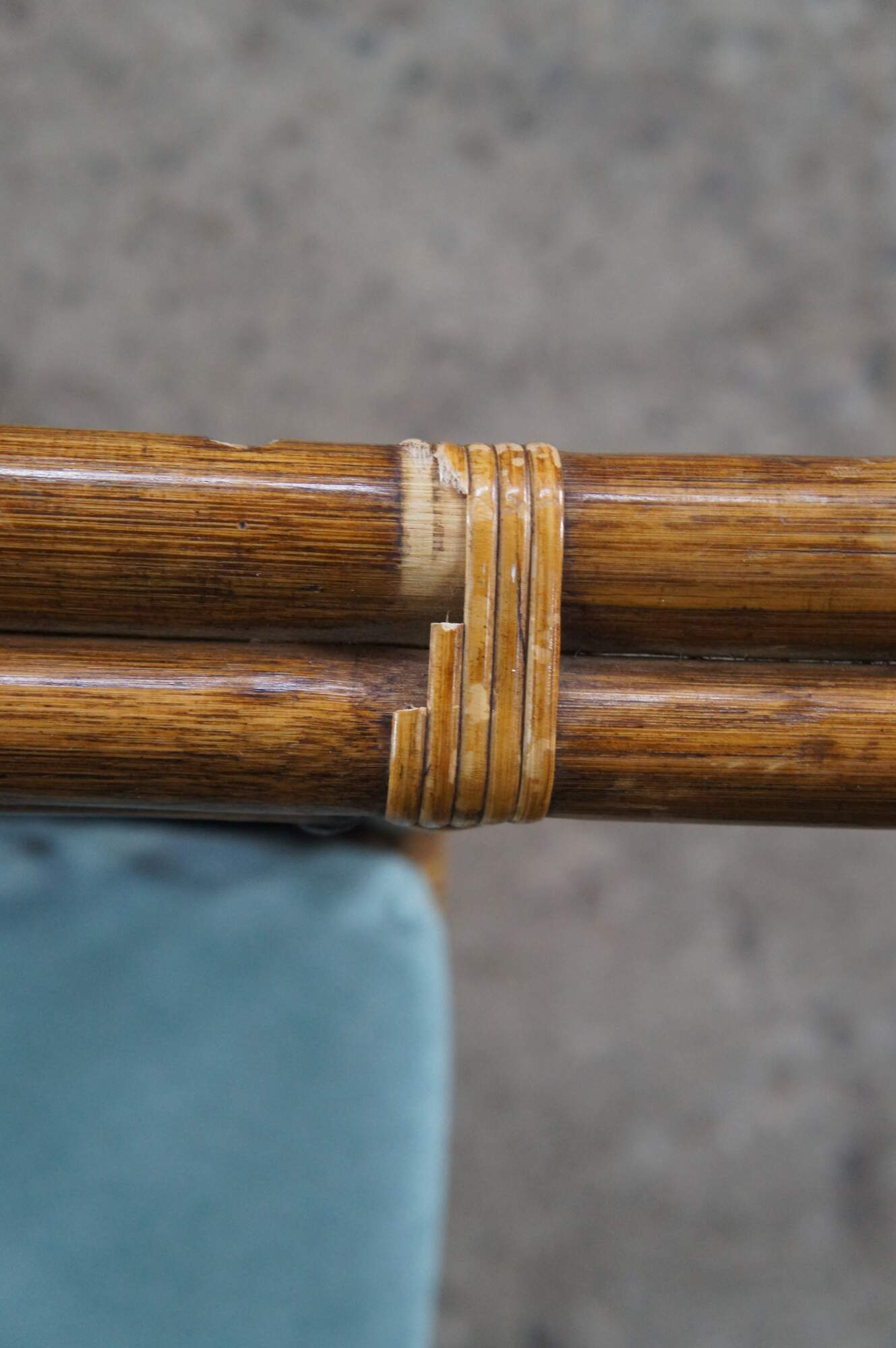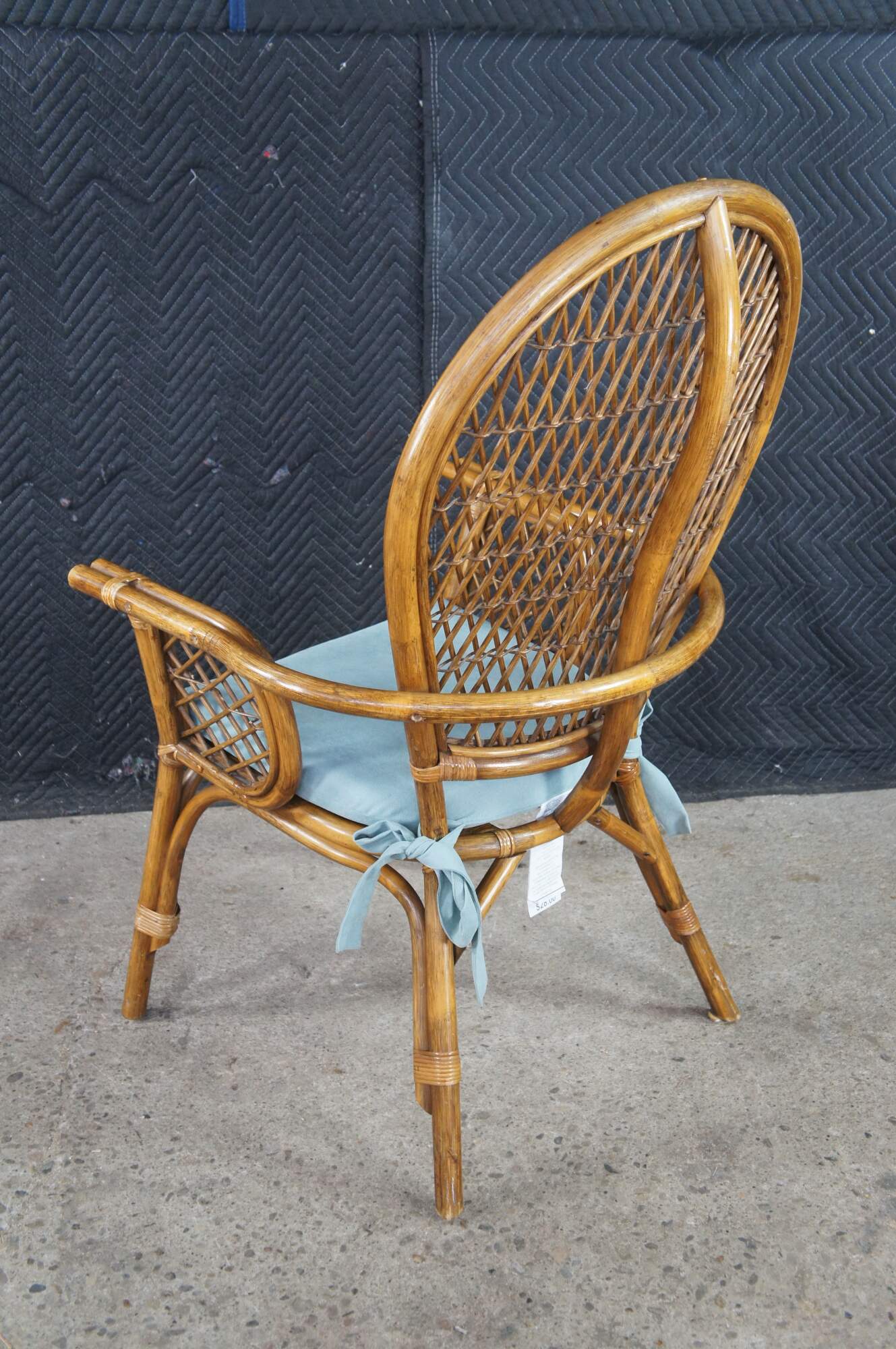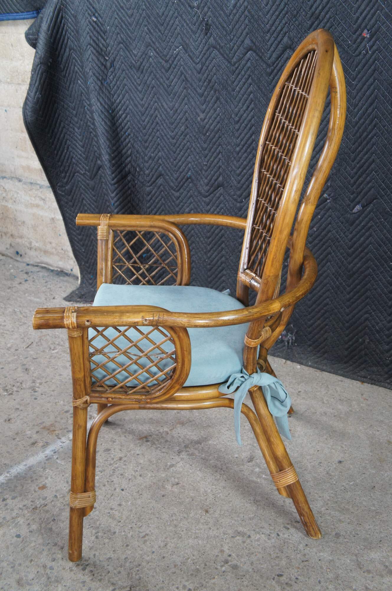 Good Vintage Condition; some loose and broken pieces of rattan.