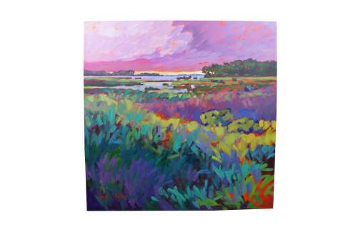 A native of the South, Betty Anglin Smith is active in the community of Charleston SC, where she is known as a painter of Lowcountry scenes using a technique of large brush strokes and bold, vibrant colors. Her focus is expansive marsh vistas, beaches and waterways that are an integral part of the Lowcountry landscape with its mile-upon-mile of flat marshland - a challenge to her as an artist because it is a world seemingly void of the diagonal lines that artists use to balance a painting and add depth.